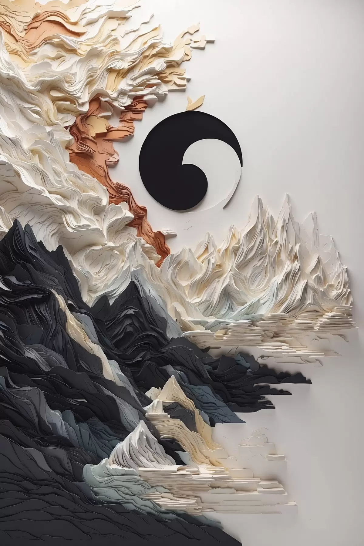 Tablouri Peisaj abstract cu munți într-un stil de hârtie s45482