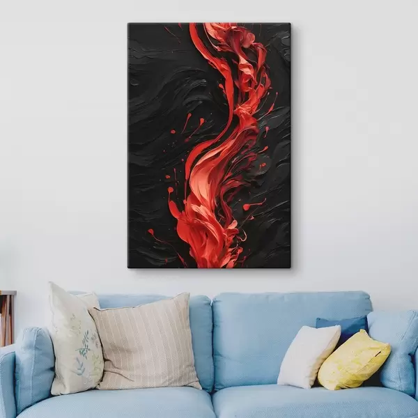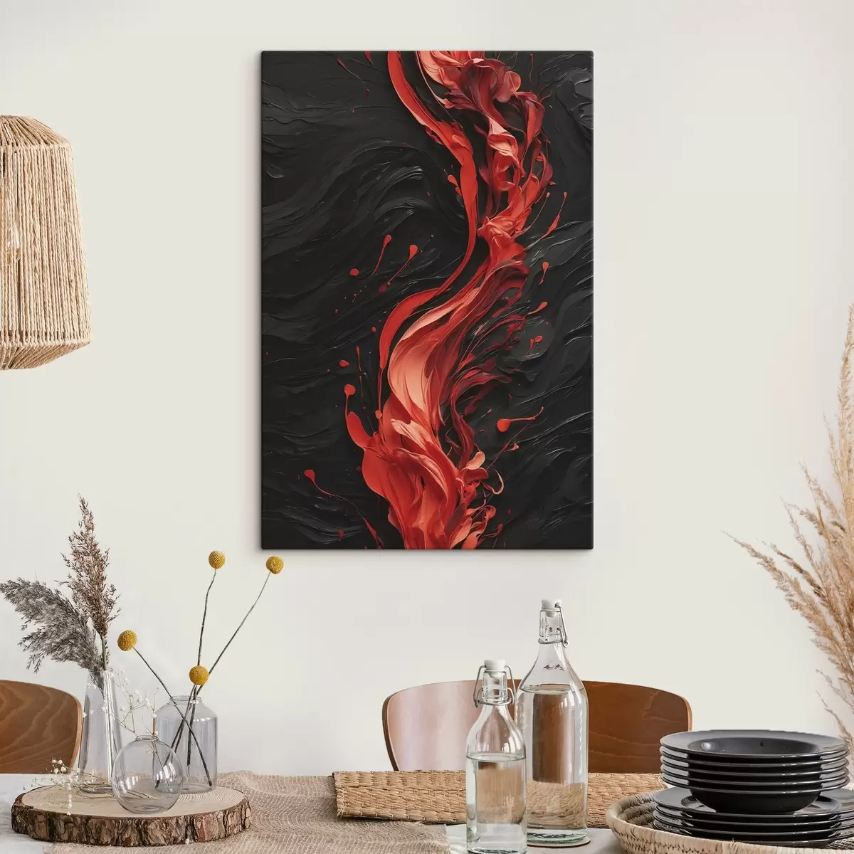 Pictură pe pânză Abstract cu tușe roșii pe fundal negru Nr s45490