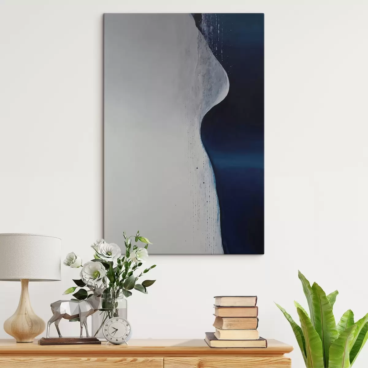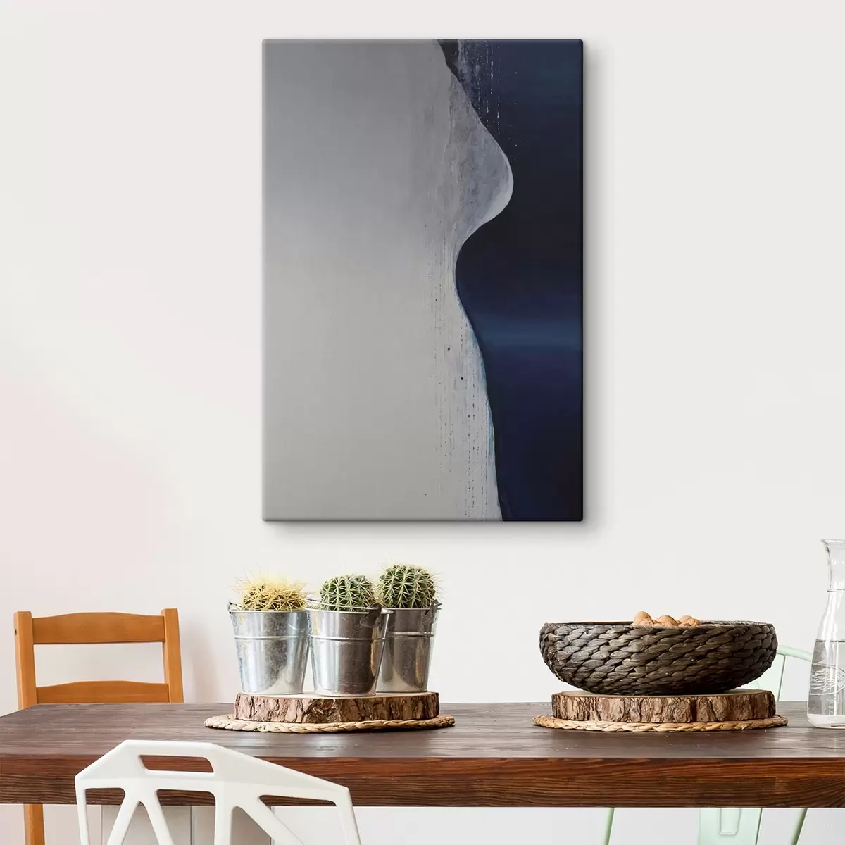 Tablouri Pictură abstractă în nuanțe de alb, albastru și albastru închis s45493