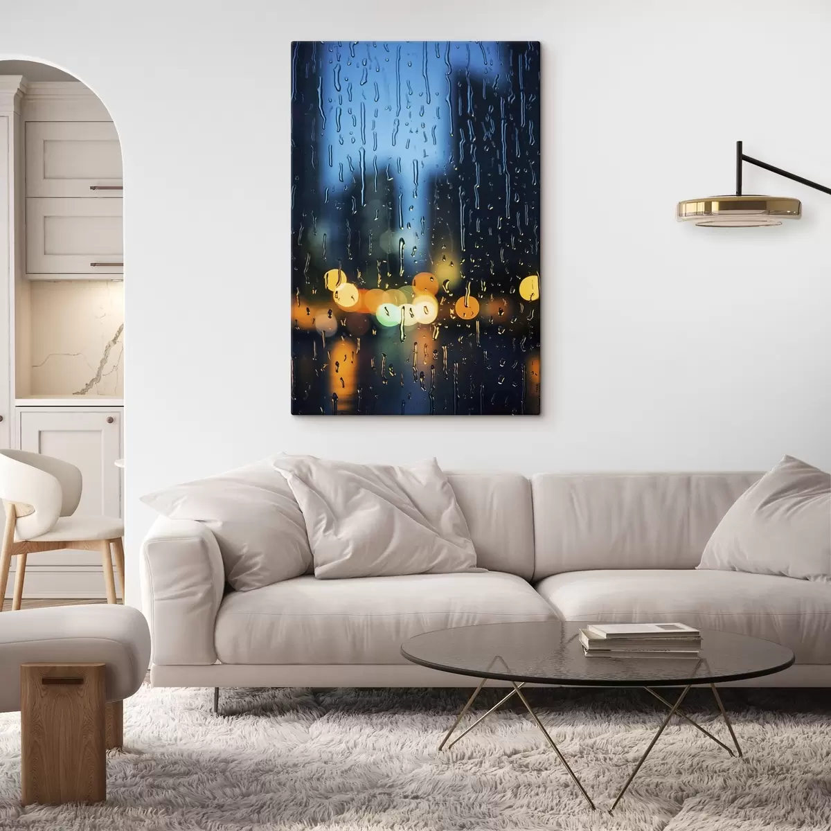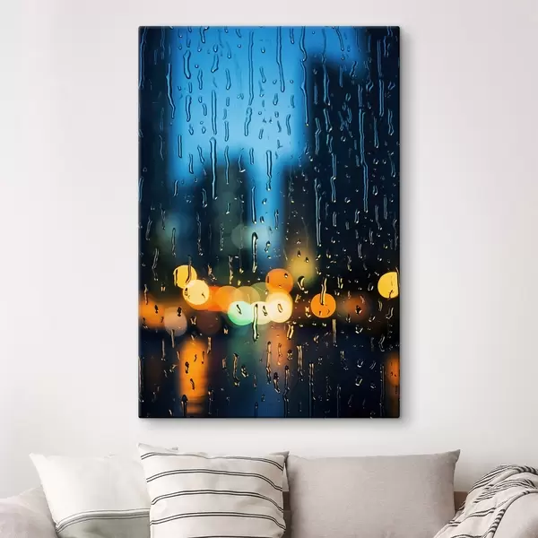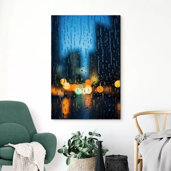 Pictură pe pânză Picături de ploaie pe fereastră cu lumini de noapte Nr s45500