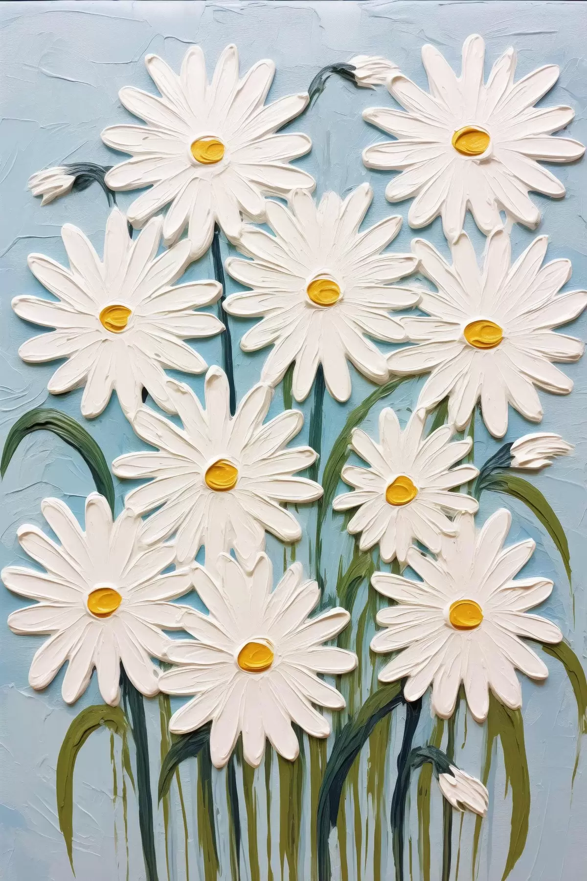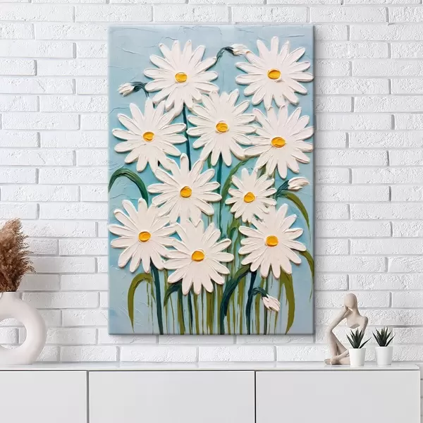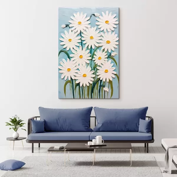 Pictură pe pânză Margarete în stilul picturii în relief: compoziție pe un fundal albastru Nr s45527