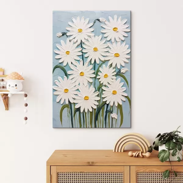 Pictură pe pânză Margarete în stilul picturii în relief: compoziție pe un fundal albastru Nr s45527