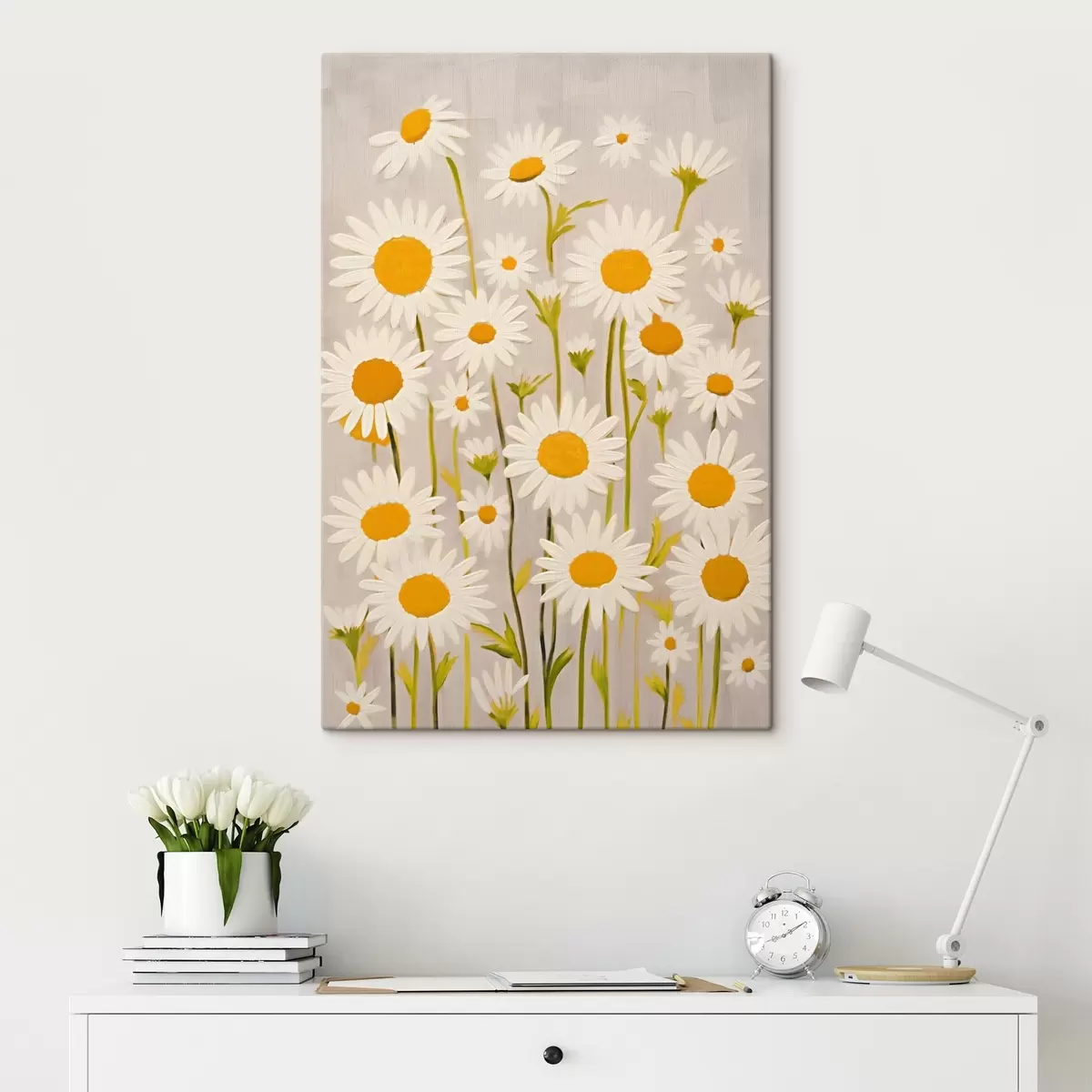 Pictură pe pânză Wildflowers: compoziție de margarete pe un fundal luminos Nr s45528