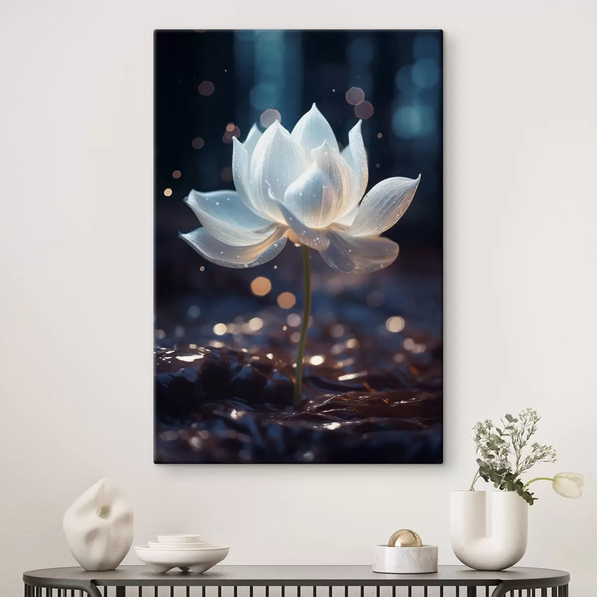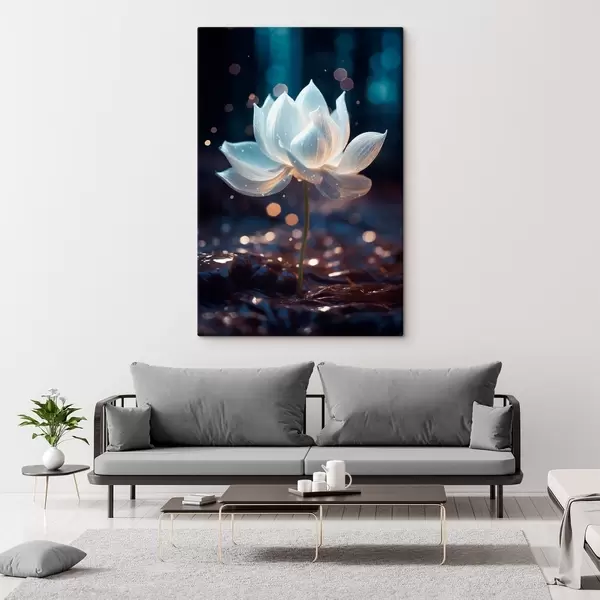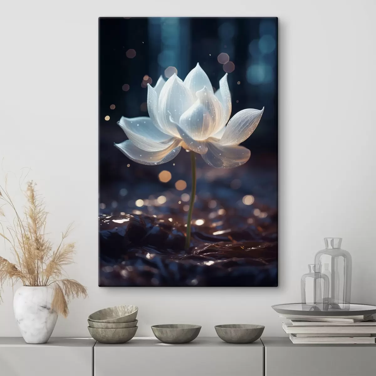 Pictură pe pânză Lotus proaspăt: compoziție de flori pe un fundal întunecat Nr s45530