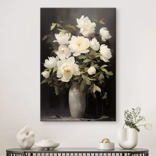 Pictură pe pânză Peonii delicate într-o vază: compoziție florală în stilul picturii Nr s45532