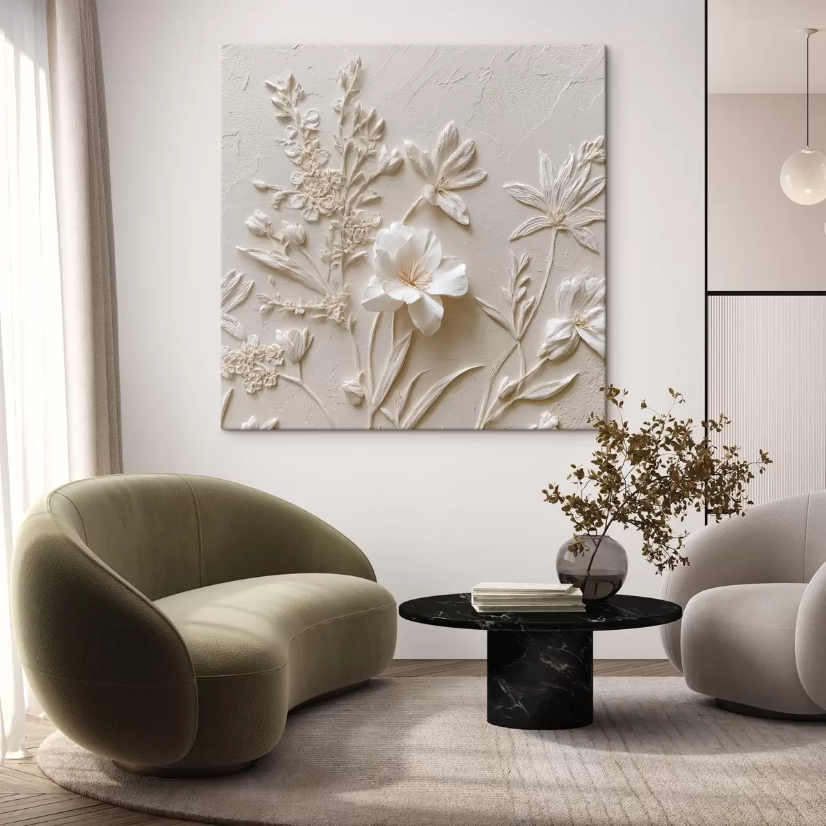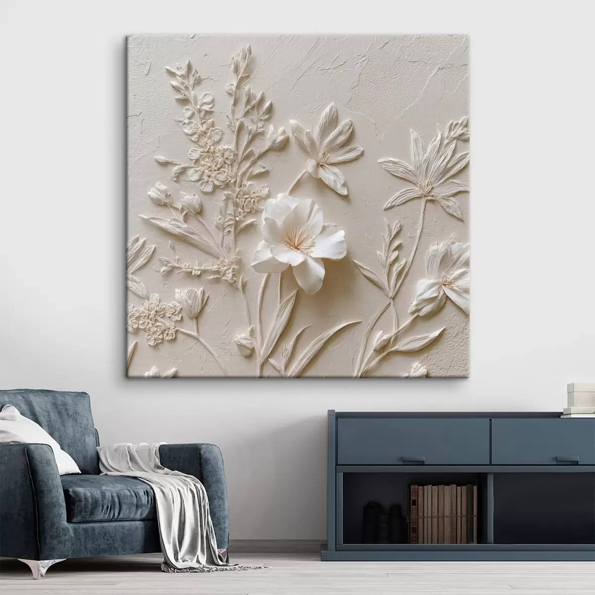 Pictură pe pânză Motiv floral: stil basorelief cu plante pe un fundal deschis Nr s45536
