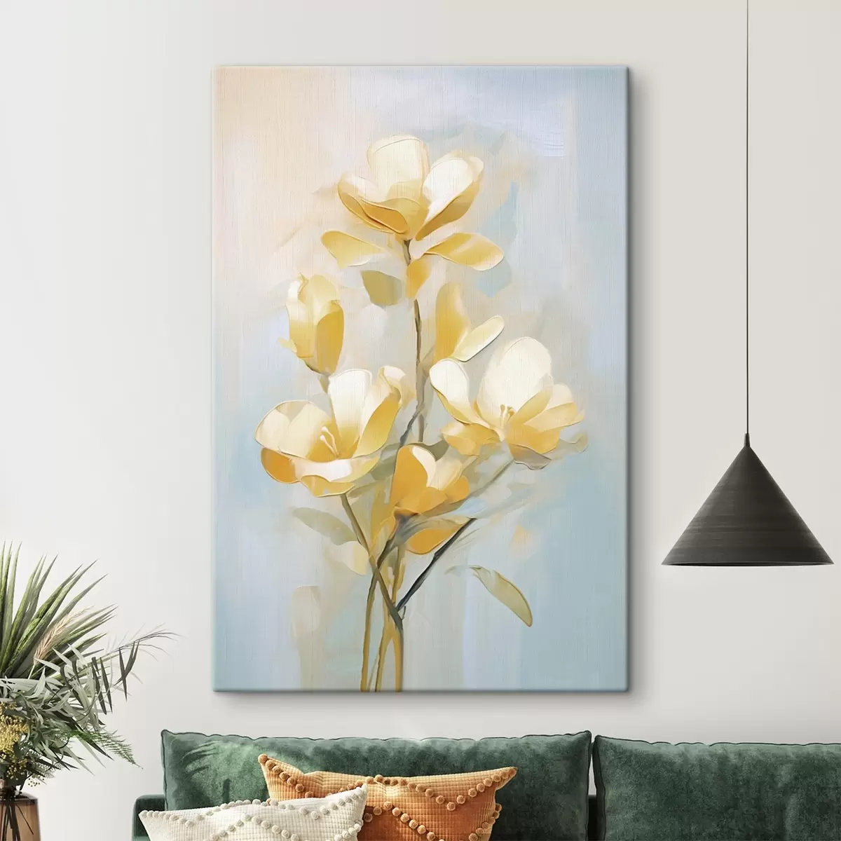 Pictură pe pânză Motiv floral: buchet în tonuri de galben deschis și albastru Nr s45540