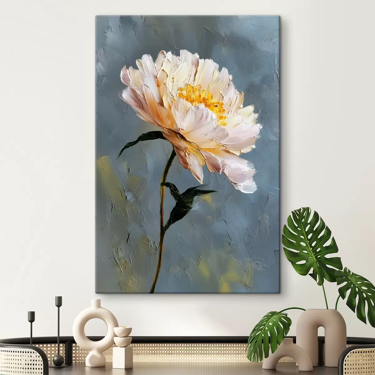 Tablouri Floare abstractă: compoziție în tonuri de albastru și gri s45542