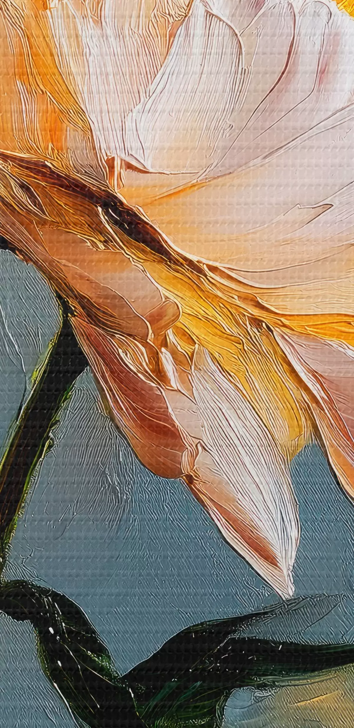 Țesătura fină a firelor de pe această pânză seamănă cu suprafața pânzelor artiștilor profesioniști.