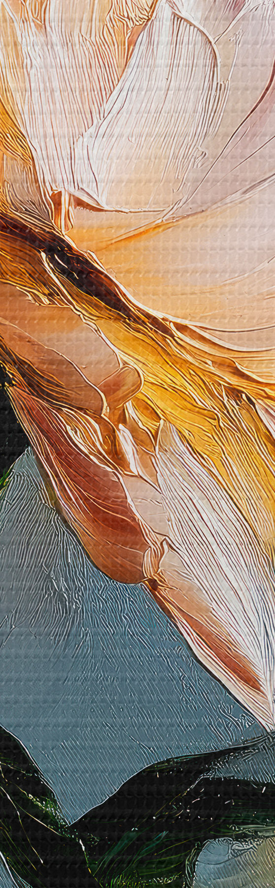Trei tipuri de materiale sunt disponibile pentru comandă: Economic Canvas - un material dens și durabil pentru imprimarea digitală, identic cu pânza de pictor, suprafață impermeabilă, reproducere realistă a detaliilor, material cu granulație medie. Premium Canvas - textura seamănă cu cea a pânzei unui pictor (fire mici împletite). Reproducere moale, detaliată a imaginii pe o suprafață mată. Eco-Premium - țesătură 100% bumbac de înaltă calitate. Datorită fibrelor naturale de bumbac, materialul este durabil și rezistent la uzură. Reproducere excelentă a culorilor și a detaliilor.