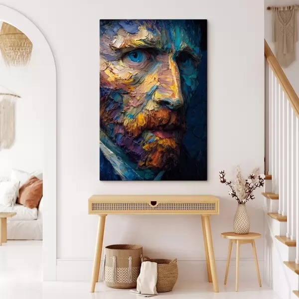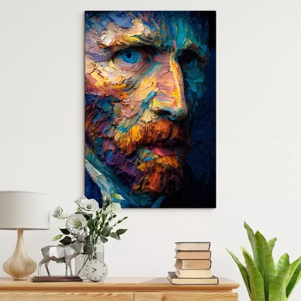 Pictură pe pânză Portret decorativ Van Gogh: pictură în relief în tonuri de albastru și portocaliu Nr s45546