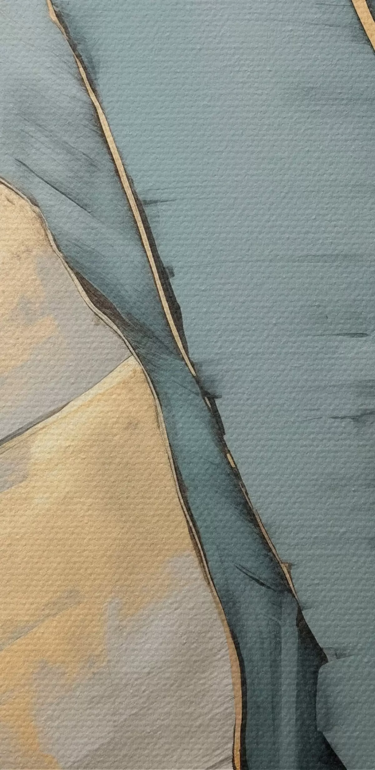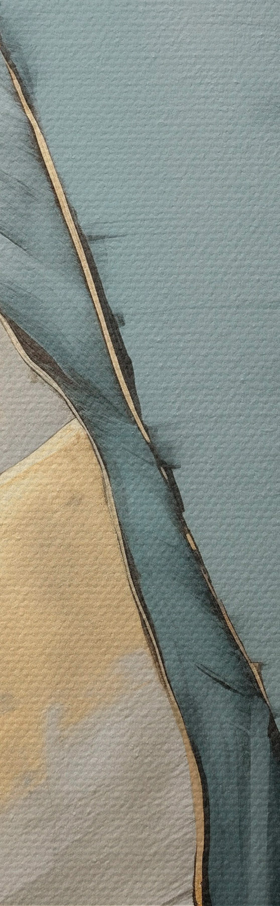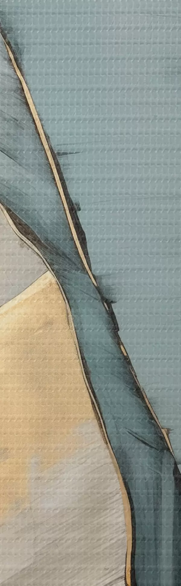 Tablouri Frunze de banane albastre, gri și galbene cu tușe de pensulă vizibile, pe un fundal alb abstract s45552