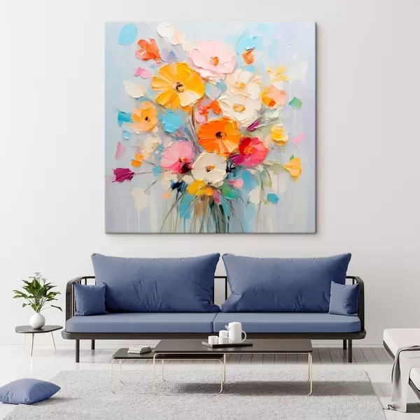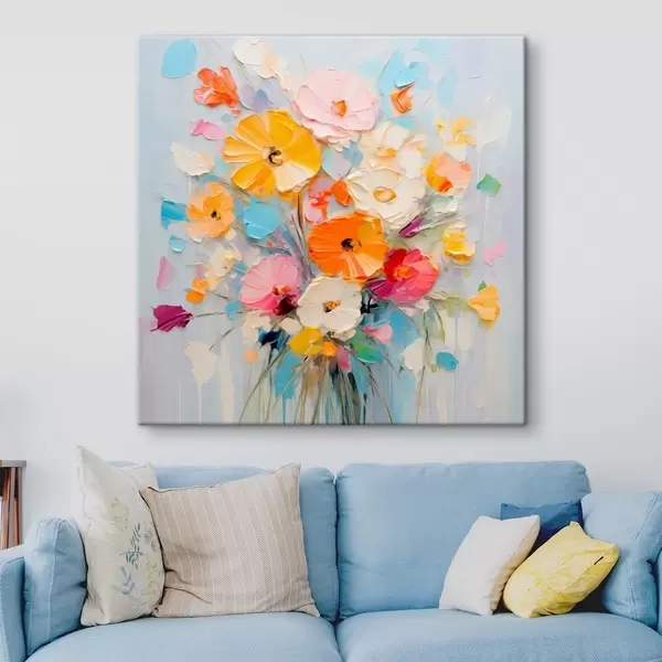 Pictură pe pânză Motiv floral: buchet abstract în tonuri pastelate Nr s45599