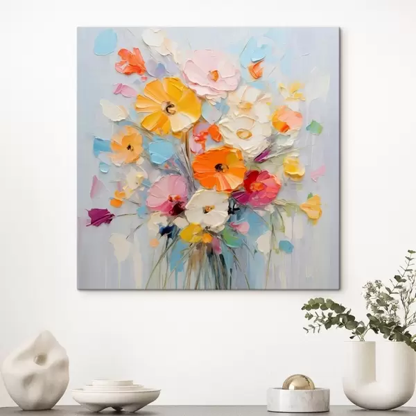 Pictură pe pânză Motiv floral: buchet abstract în tonuri pastelate Nr s45599