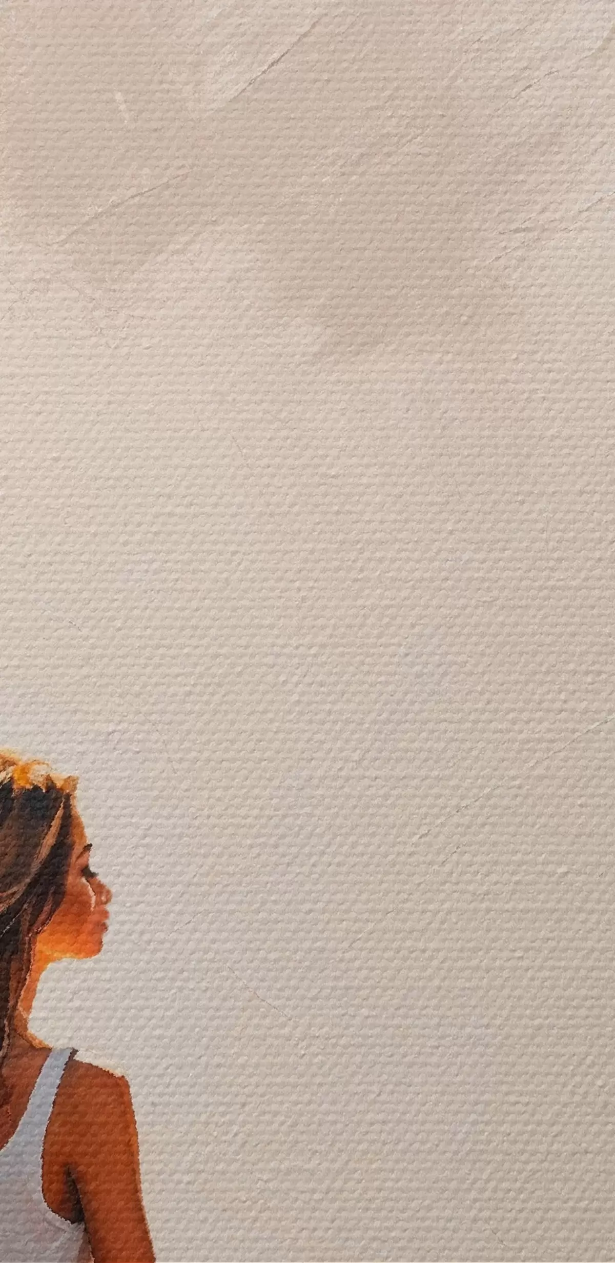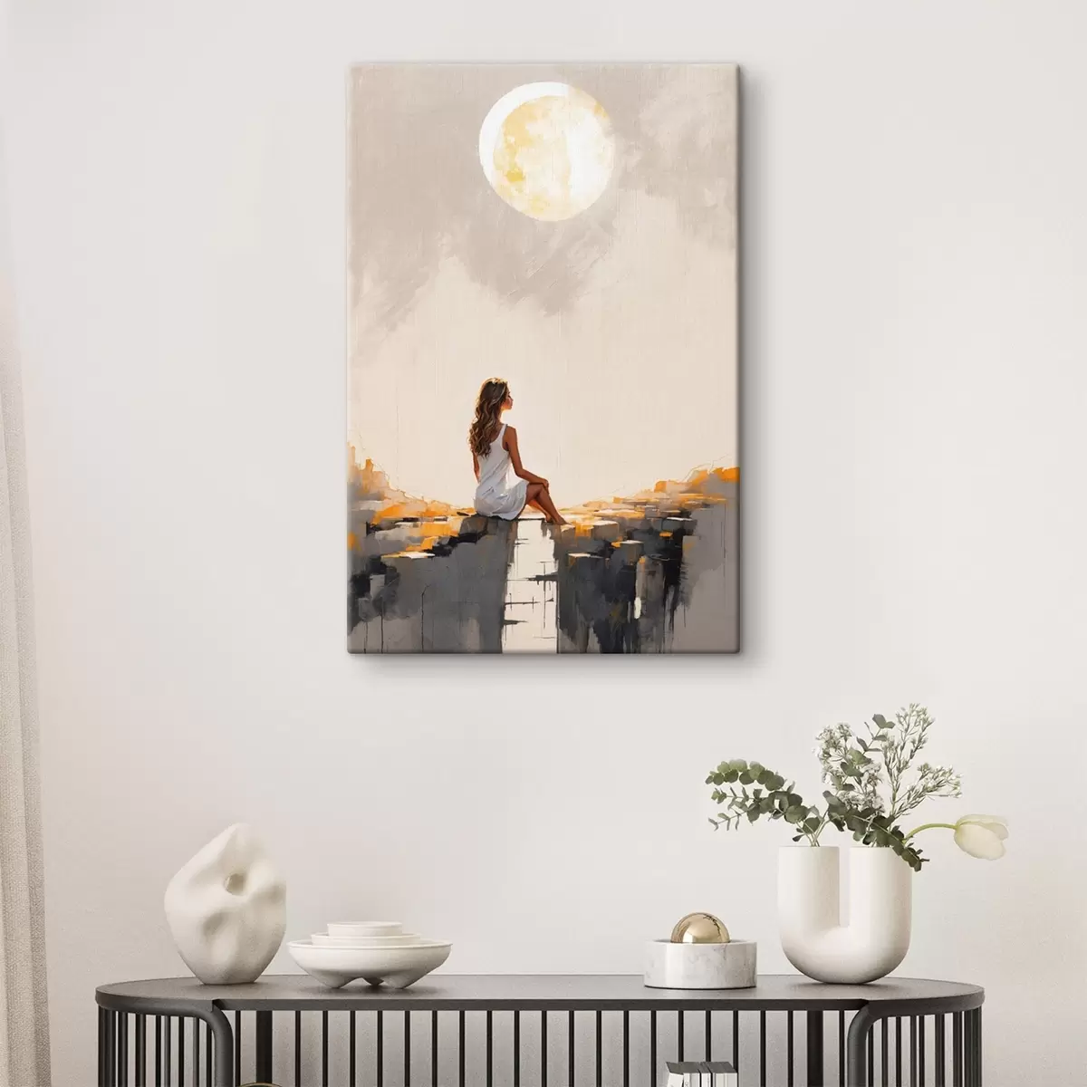 Pictură pe pânză Fată într-o rochie albă stând sub o lună mare Nr s45621