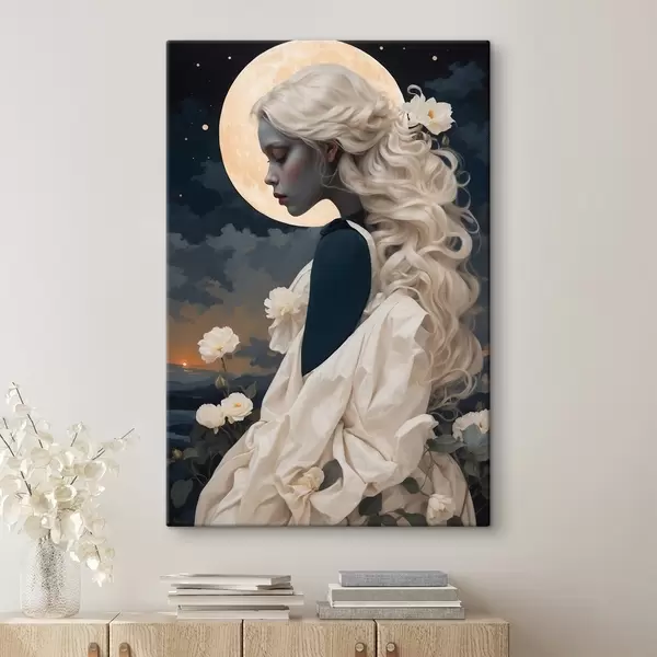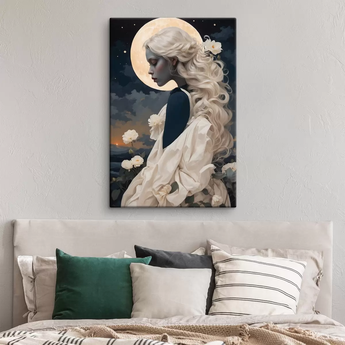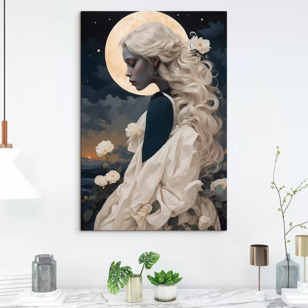 Pictură pe pânză Femeie cu părul alb sub lună Nr s45622