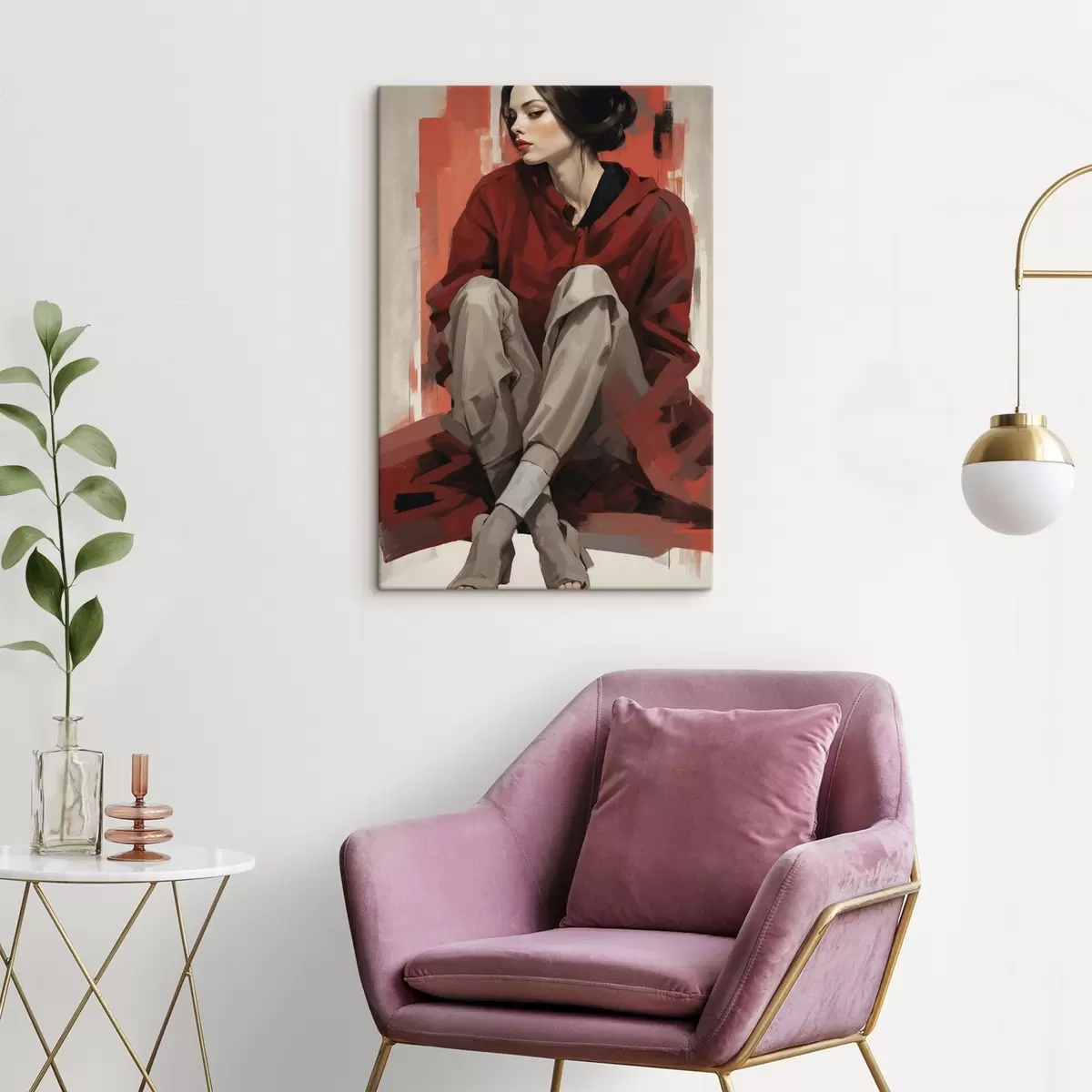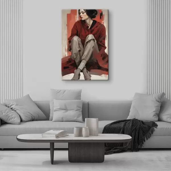 Tablouri Fată în mantie roșie stând cu picioarele îndoite s45624