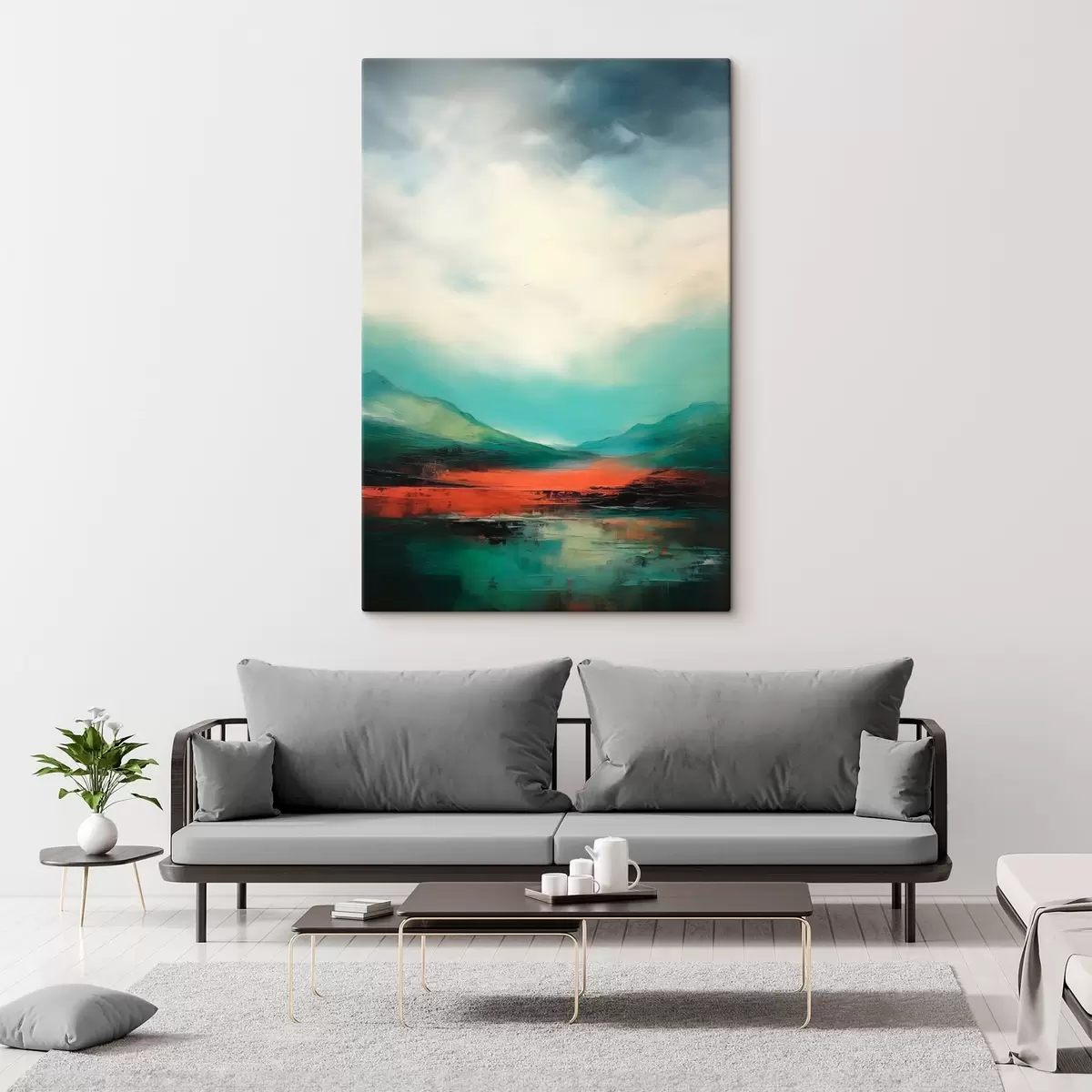 Pictură pe pânză Peisaj luminos cu nori și munți Nr s45626