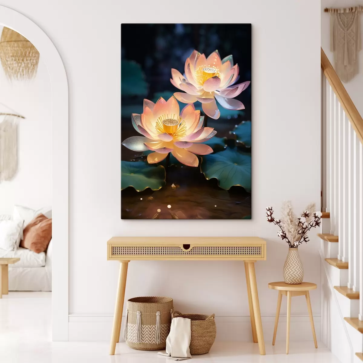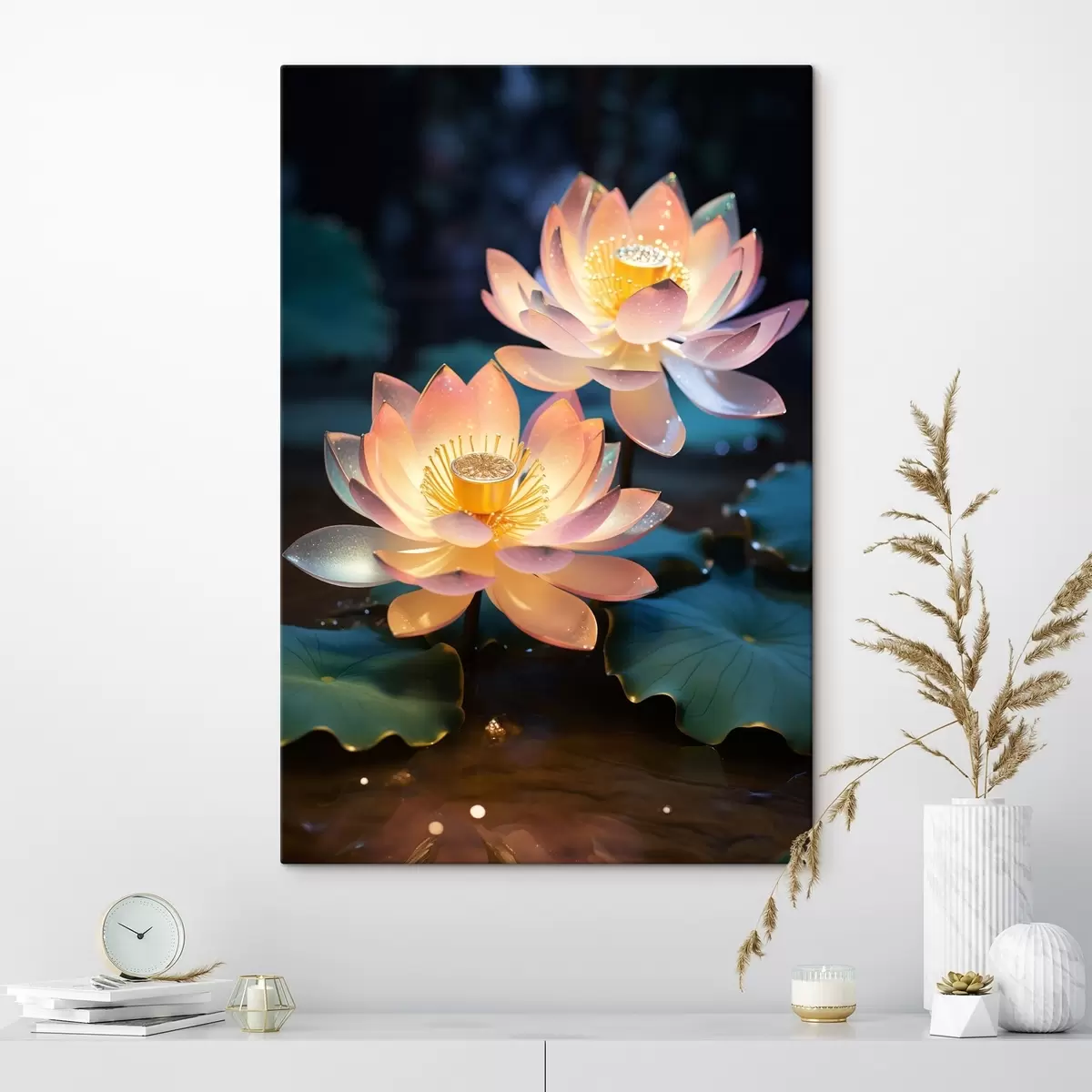 Pictură pe pânză Delicate flori de lotus pe apă în stil realism Nr s45644