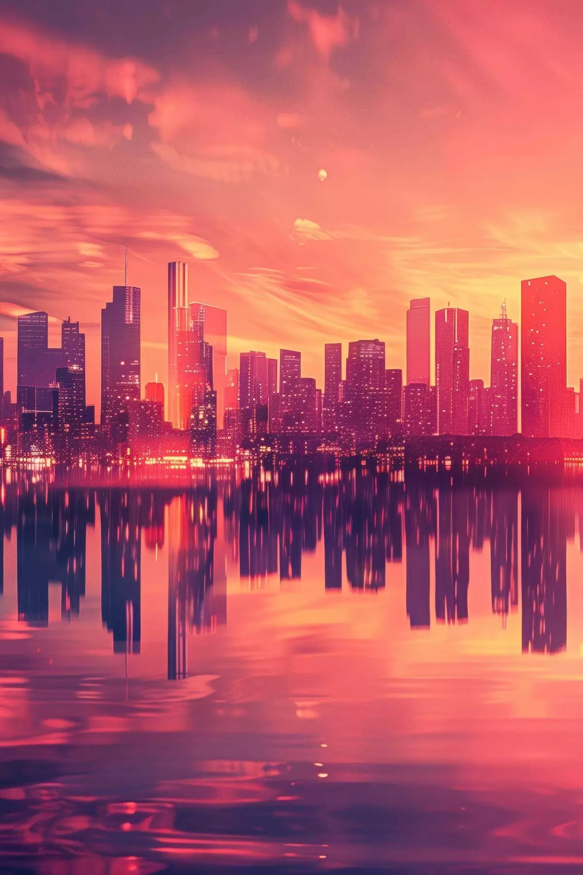 Pictură pe pânză Orașul la apusul soarelui Nr s45658