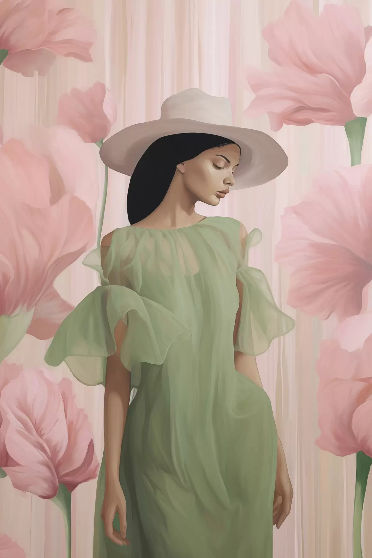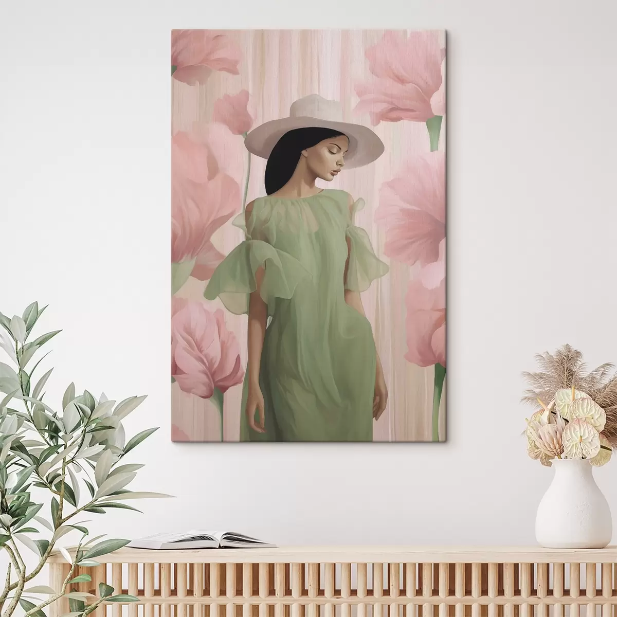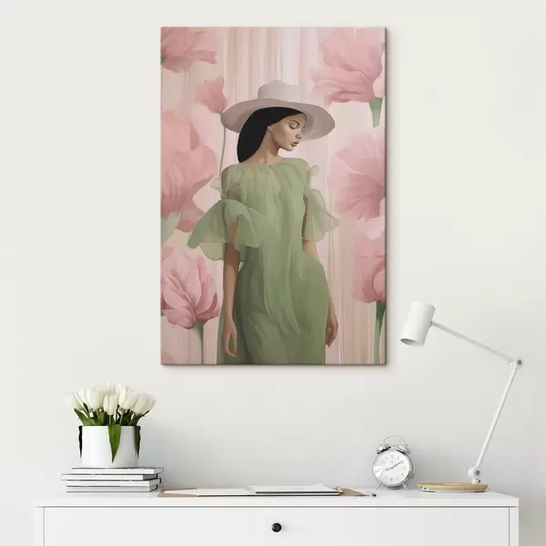 Pictură pe pânză Fată cu pălărie printre flori Nr s45678