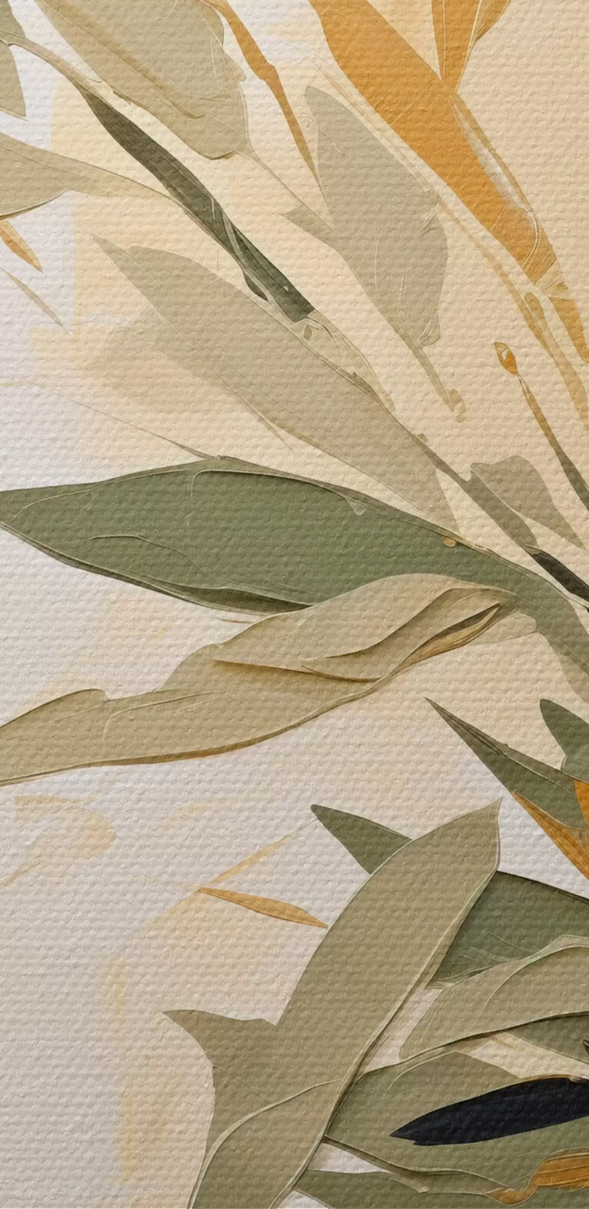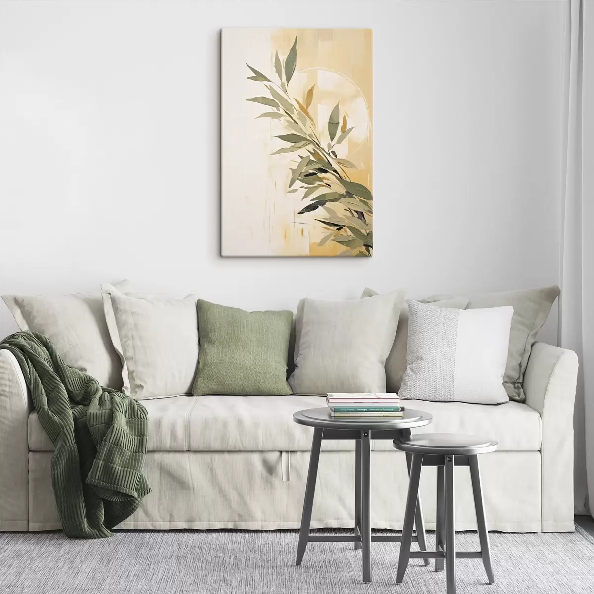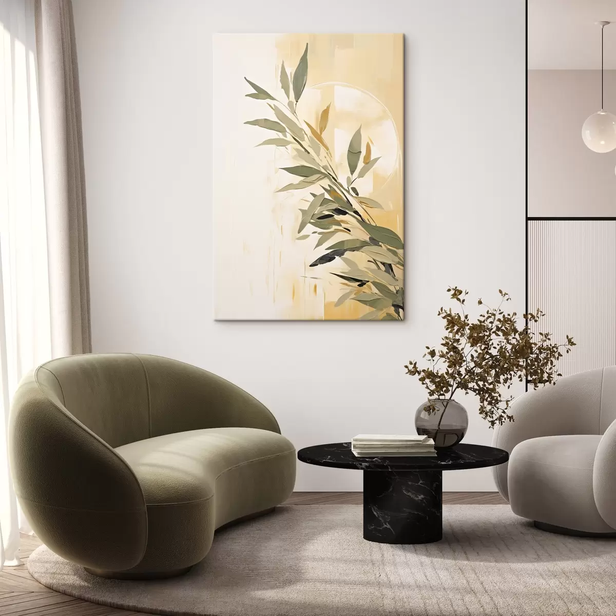 Pictură pe pânză Ramură botanică cu frunze verzi pe un fundal cald Nr s45690