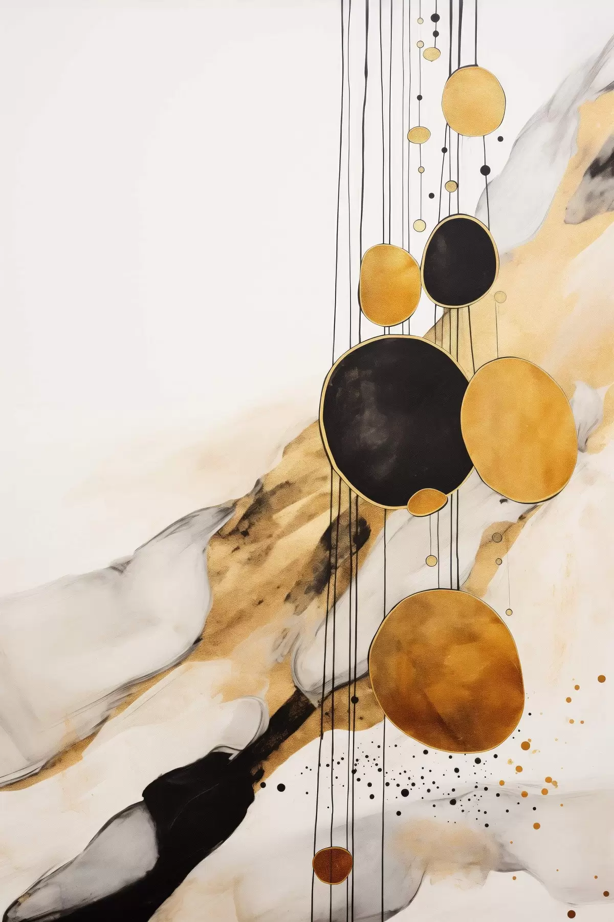 Tablouri Cercuri abstracte portocalii și negre pe un fundal deschis s45693