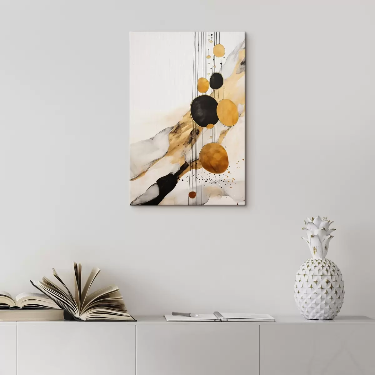 Pictură pe pânză Cercuri abstracte portocalii și negre pe un fundal deschis Nr s45693