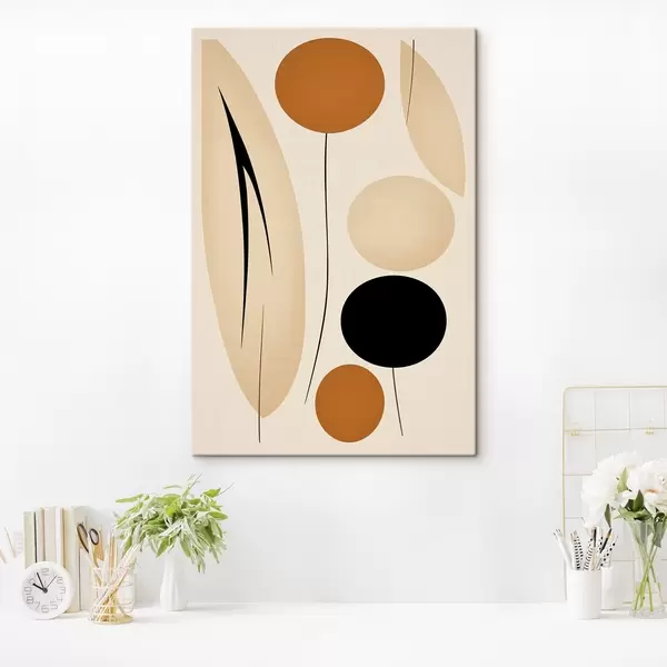 Tablouri Compoziție abstractă cu cercuri negre și portocalii s45700