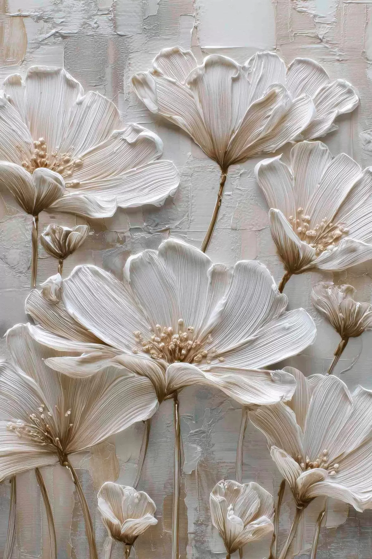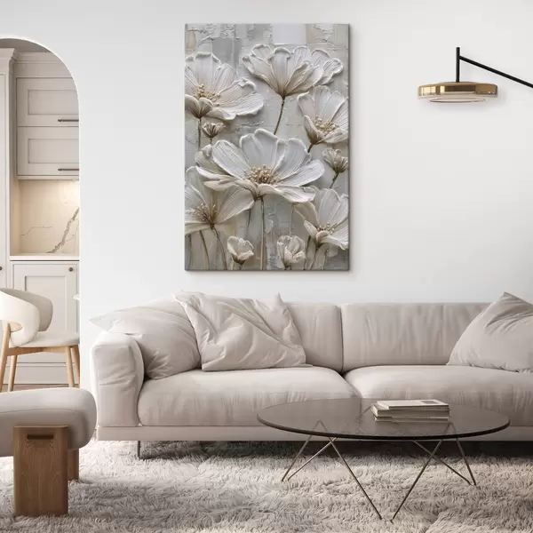 Tablouri flori crem cu stil impasto imitație s45713