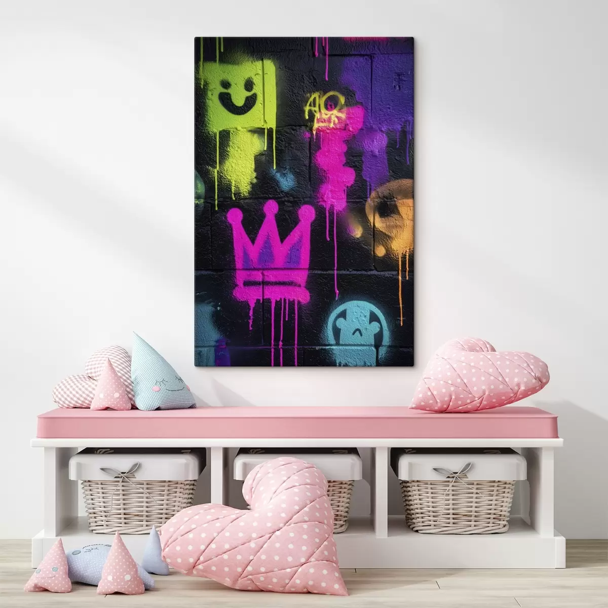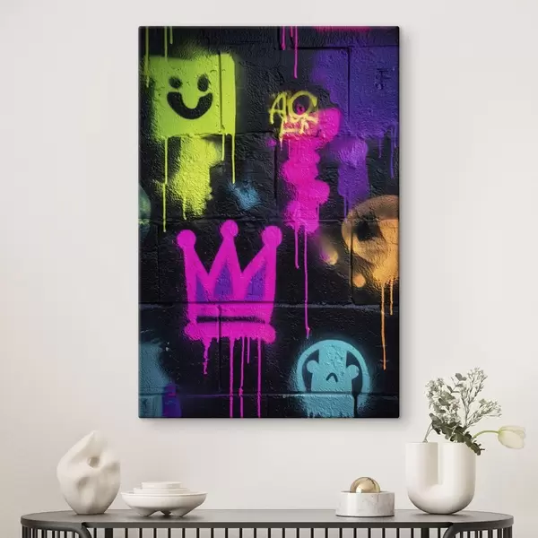 Pictură pe pânză graffiti strălucitor pe fundal întunecat Nr s45717