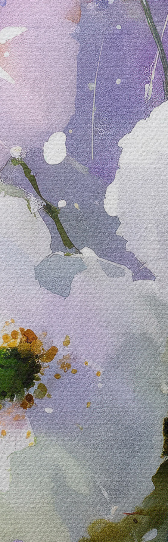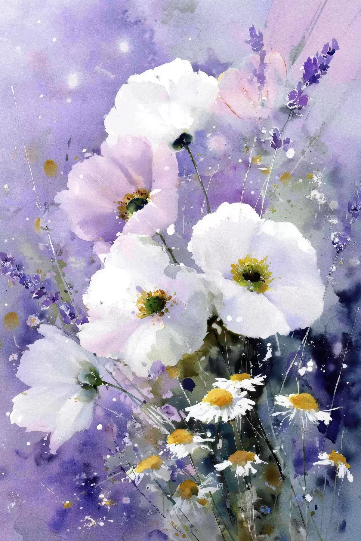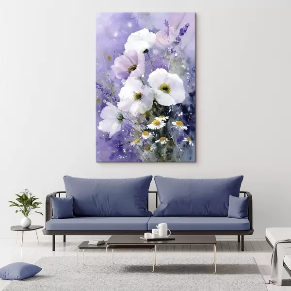 Pictură pe pânză buchet în acuarelă în tonuri de liliac și alb Nr s45719