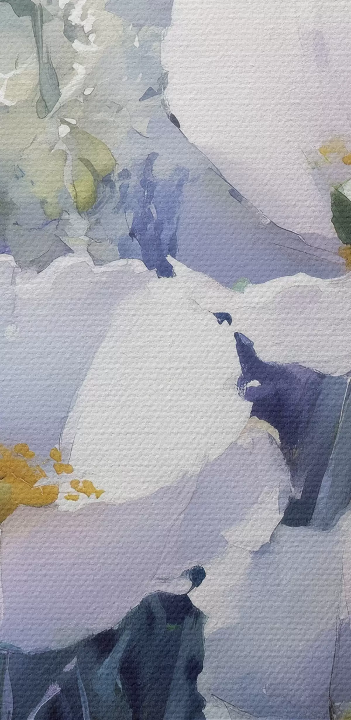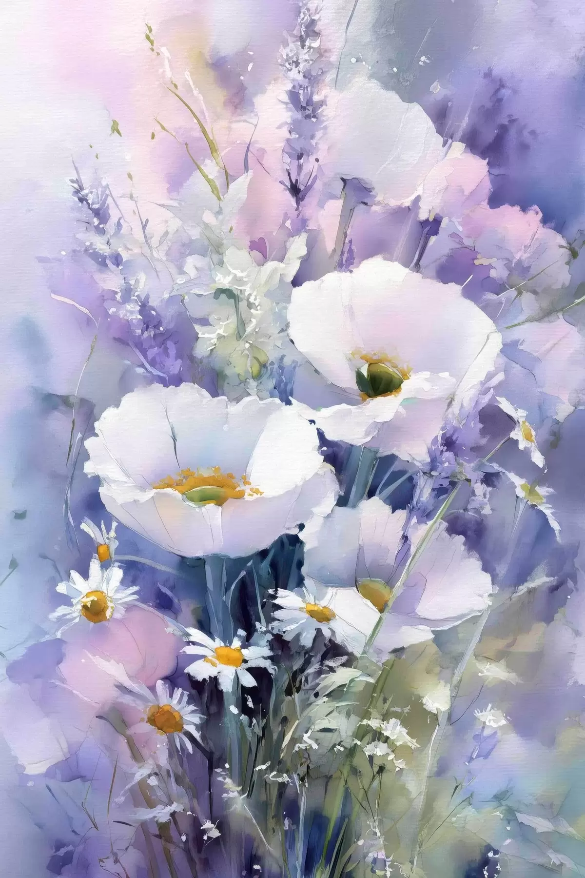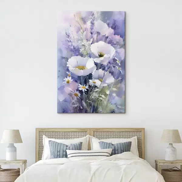 Pictură pe pânză buchet în acuarelă în tonuri de liliac și alb Nr s45720