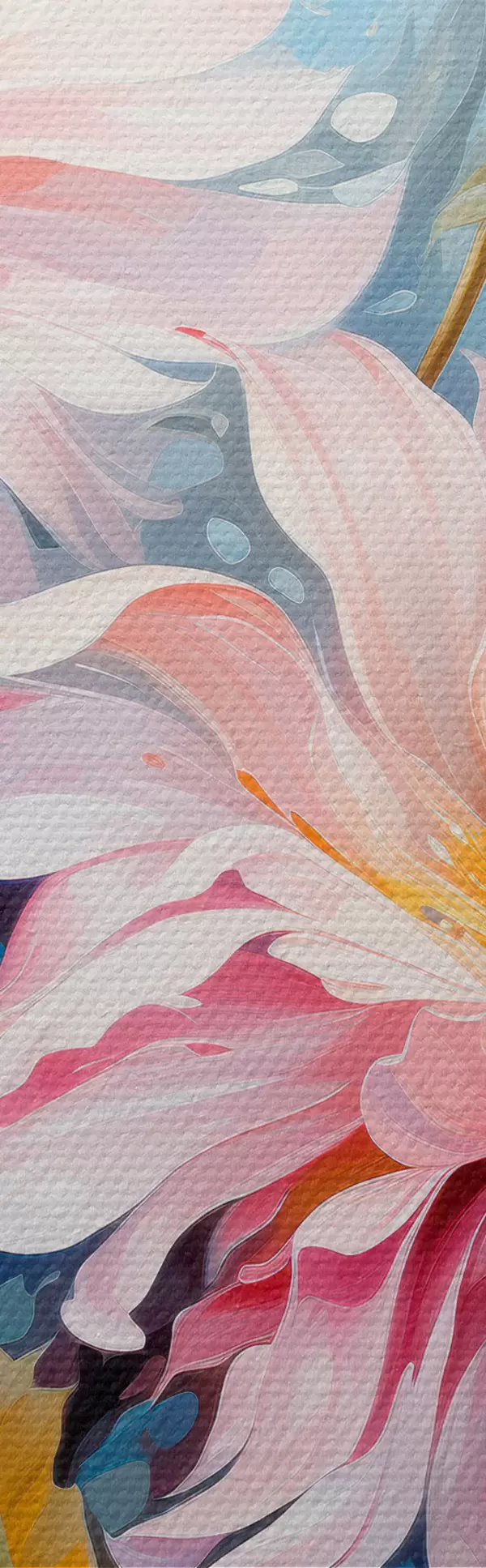 Trei tipuri de materiale sunt disponibile pentru comandă: Economic Canvas - un material dens și durabil pentru imprimarea digitală, identic cu pânza de pictor, suprafață impermeabilă, reproducere realistă a detaliilor, material cu granulație medie. Premium Canvas - textura seamănă cu cea a pânzei unui pictor (fire mici împletite). Reproducere moale, detaliată a imaginii pe o suprafață mată. Eco-Premium - țesătură 100% bumbac de înaltă calitate. Datorită fibrelor naturale de bumbac, materialul este durabil și rezistent la uzură. Reproducere excelentă a culorilor și a detaliilor.