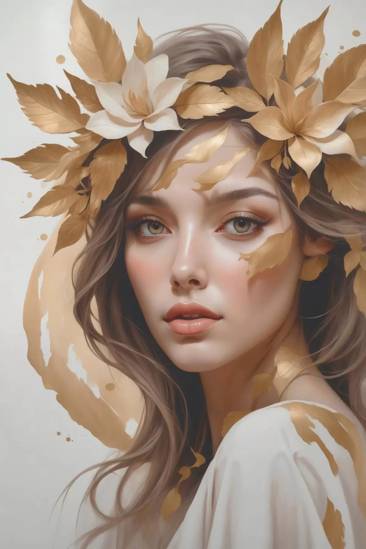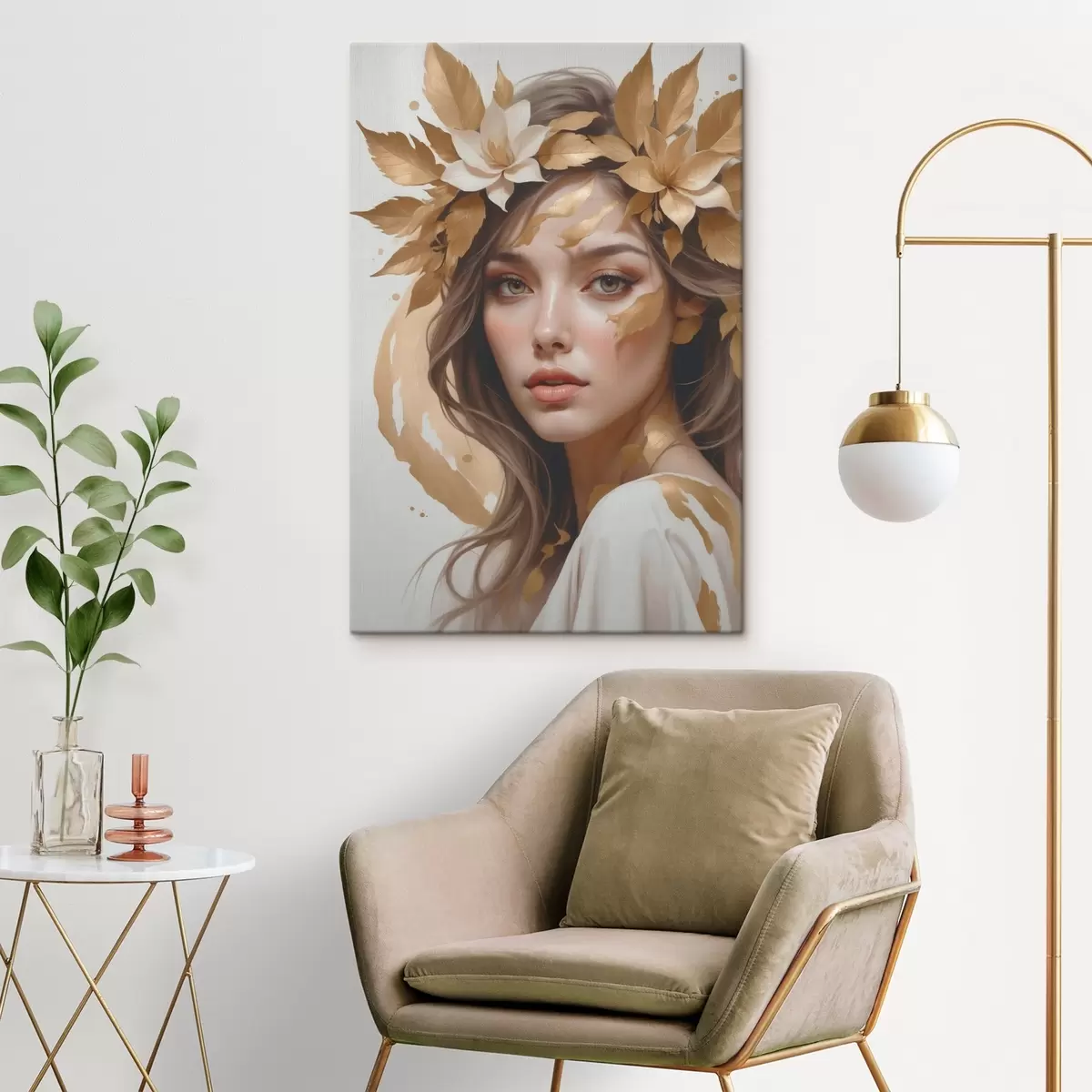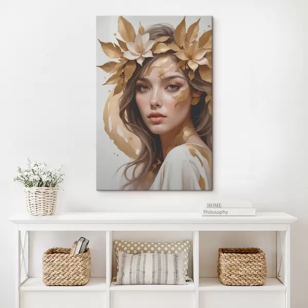 Pictură pe pânză O femeie cu frunze în păr Nr s45748
