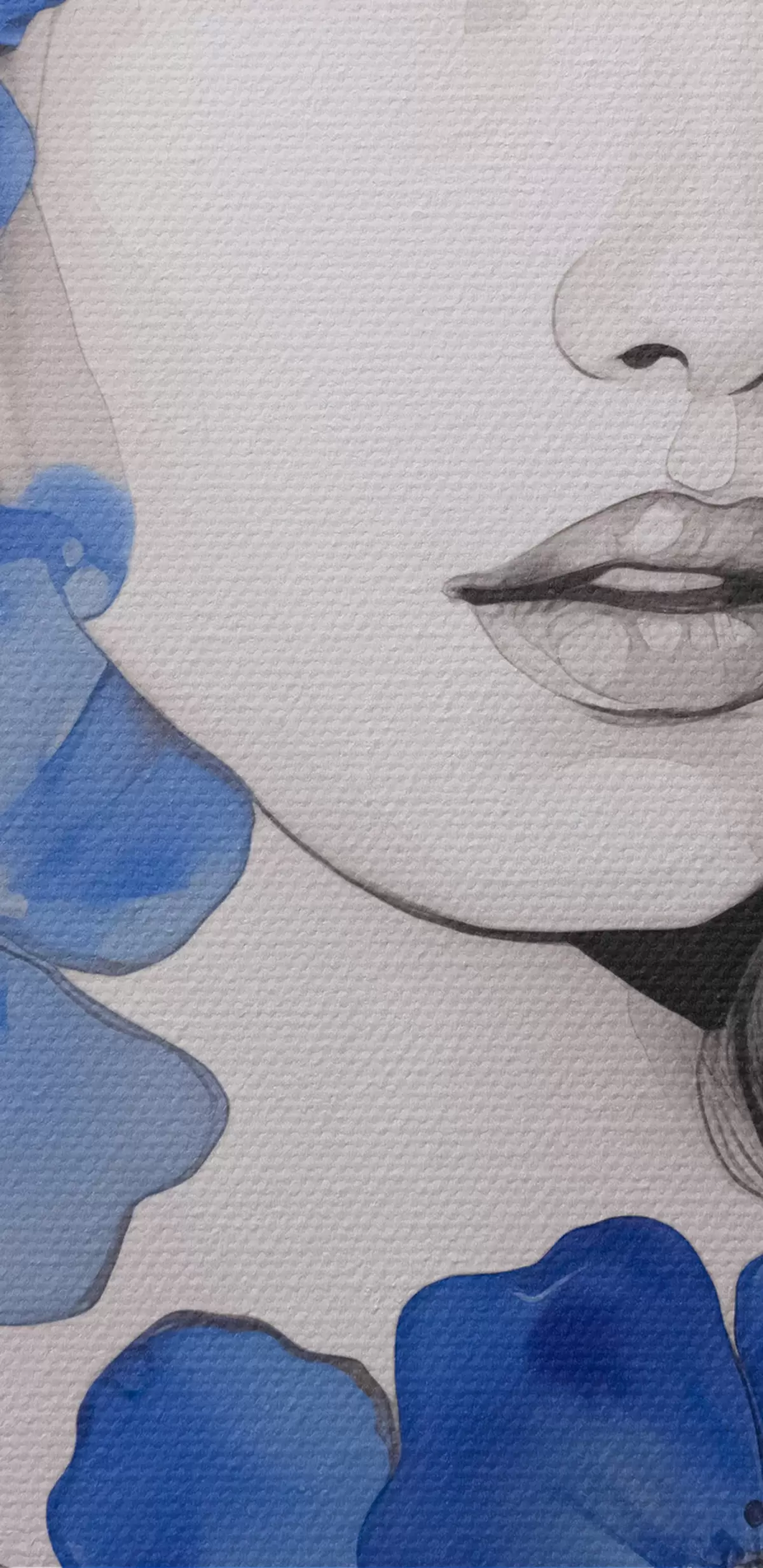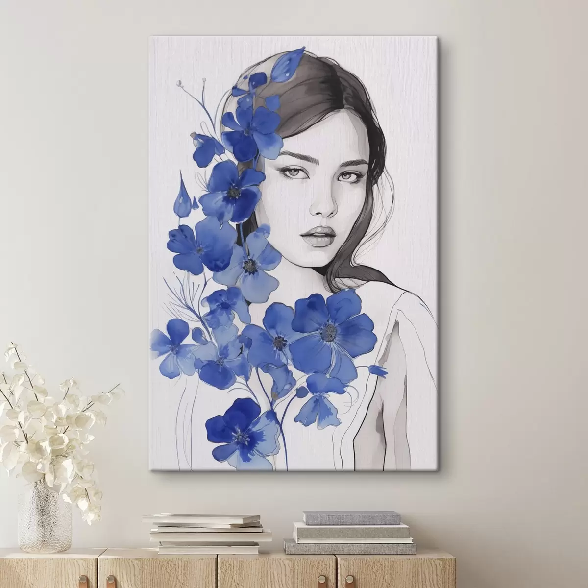 Pictură pe pânză Fată și flori albastre Nr s45757