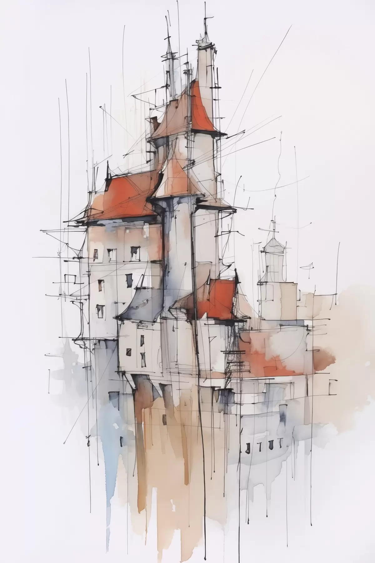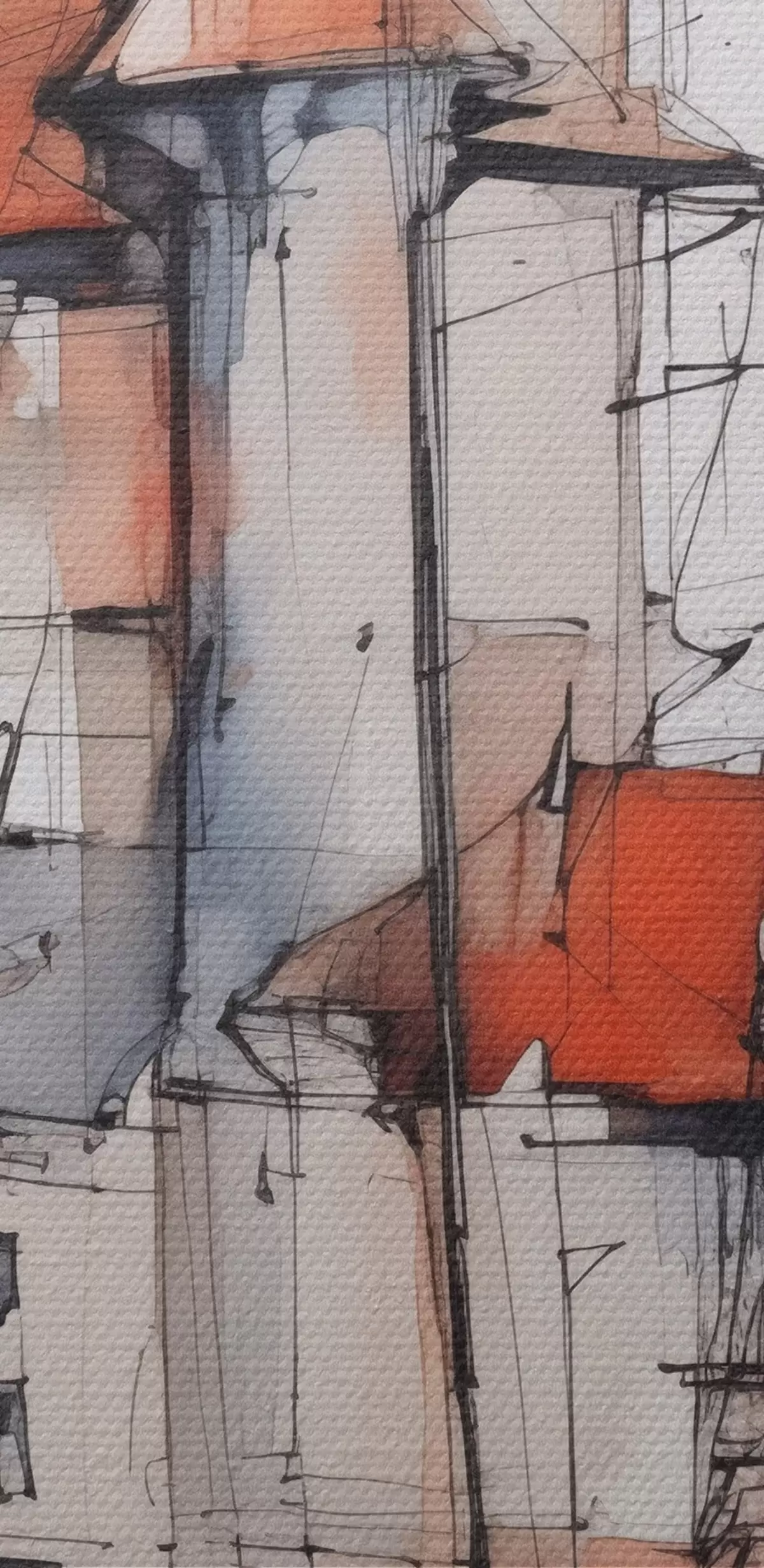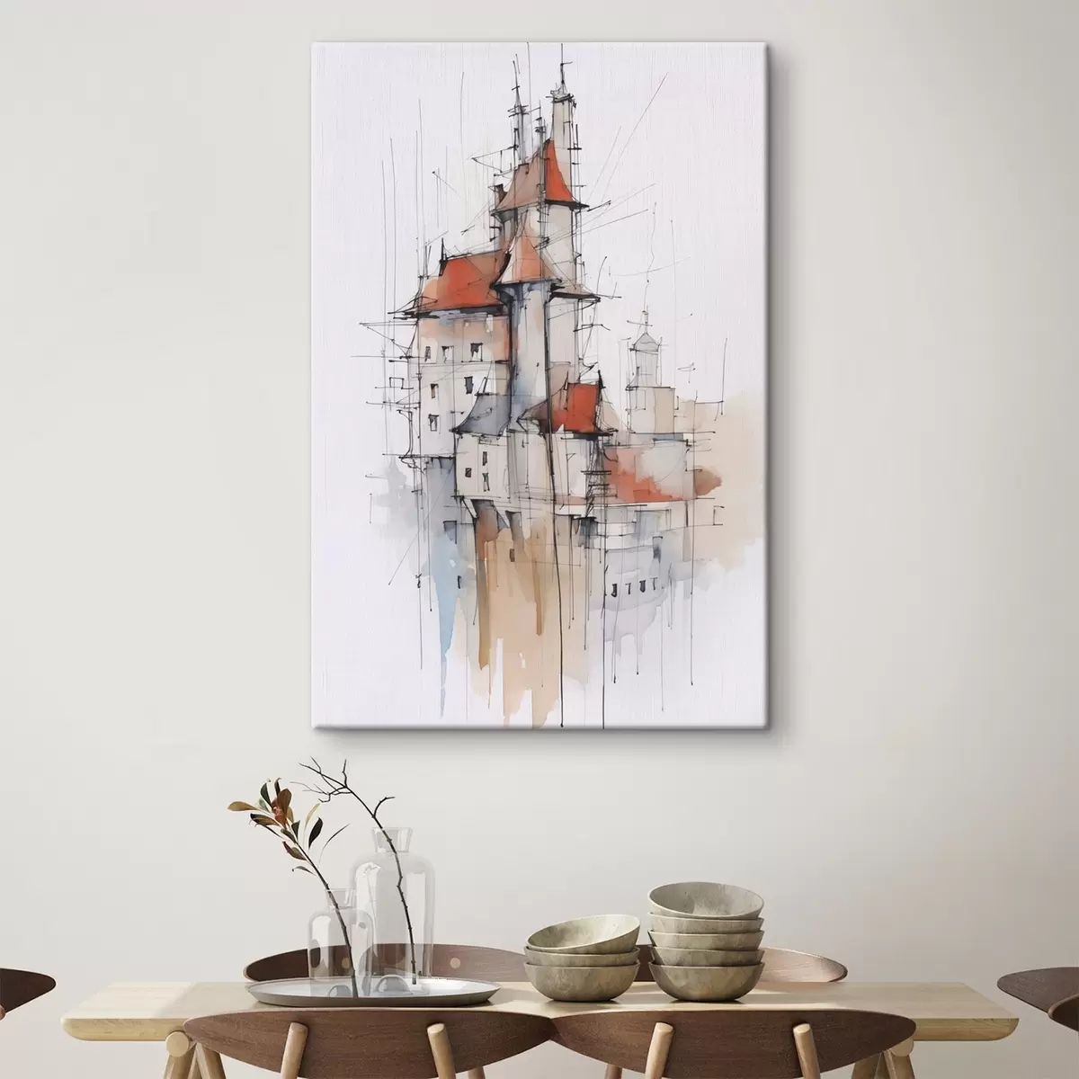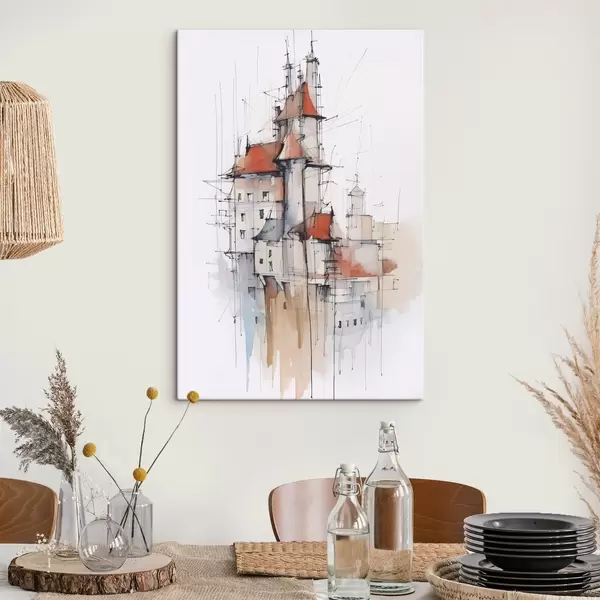 Pictură pe pânză Case schiță imitație și acuarelă Nr s45764