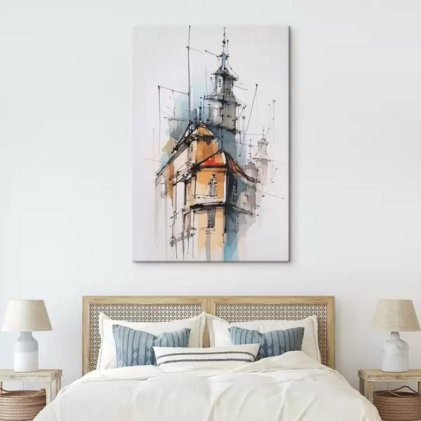 Pictură pe pânză Case schiță imitație și acuarelă Nr s45765