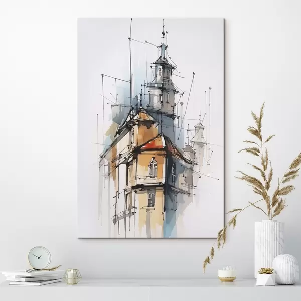Pictură pe pânză Case schiță imitație și acuarelă Nr s45765