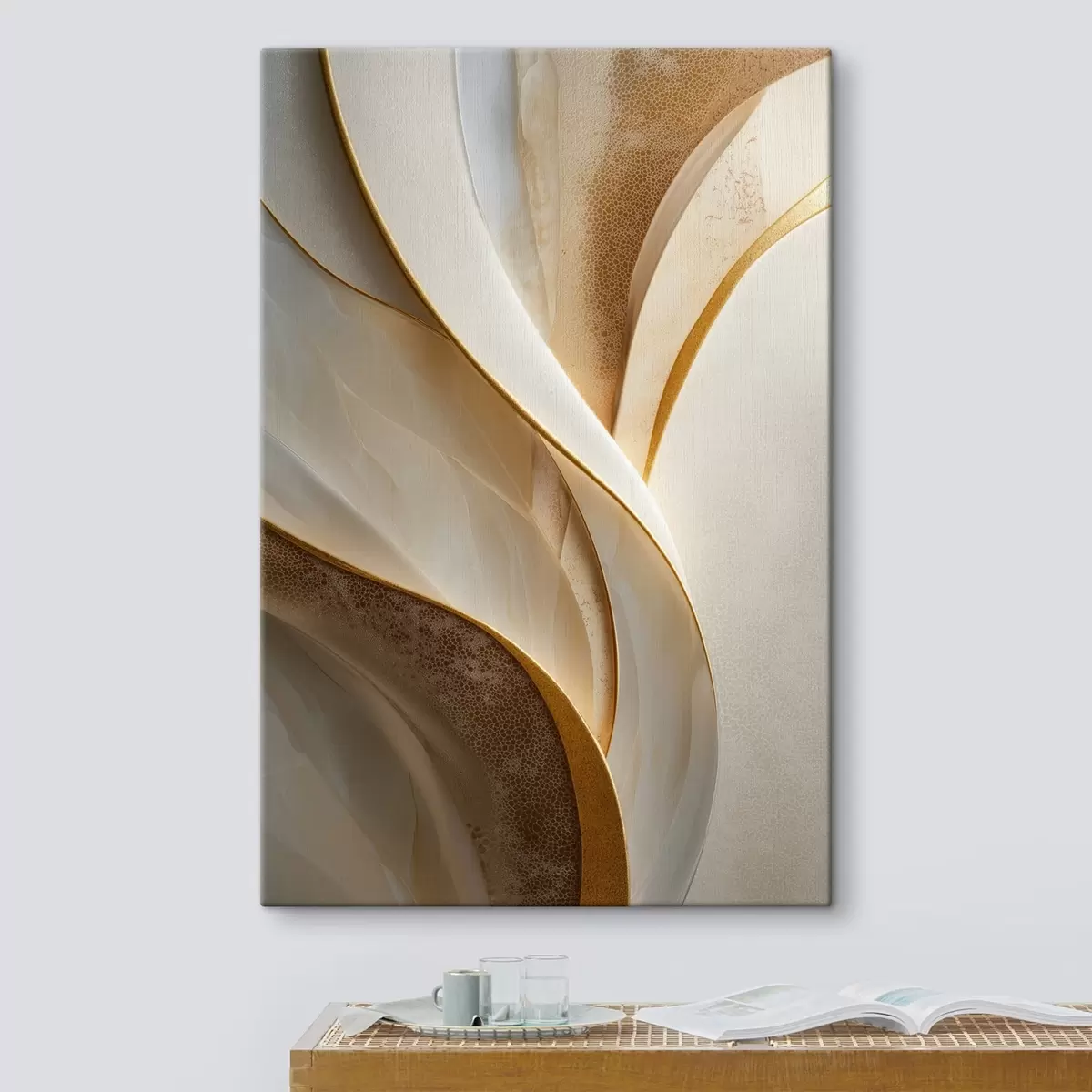 Pictură pe pânză Curbe abstracte cu accente galben-portocaliu și bej Nr s45807