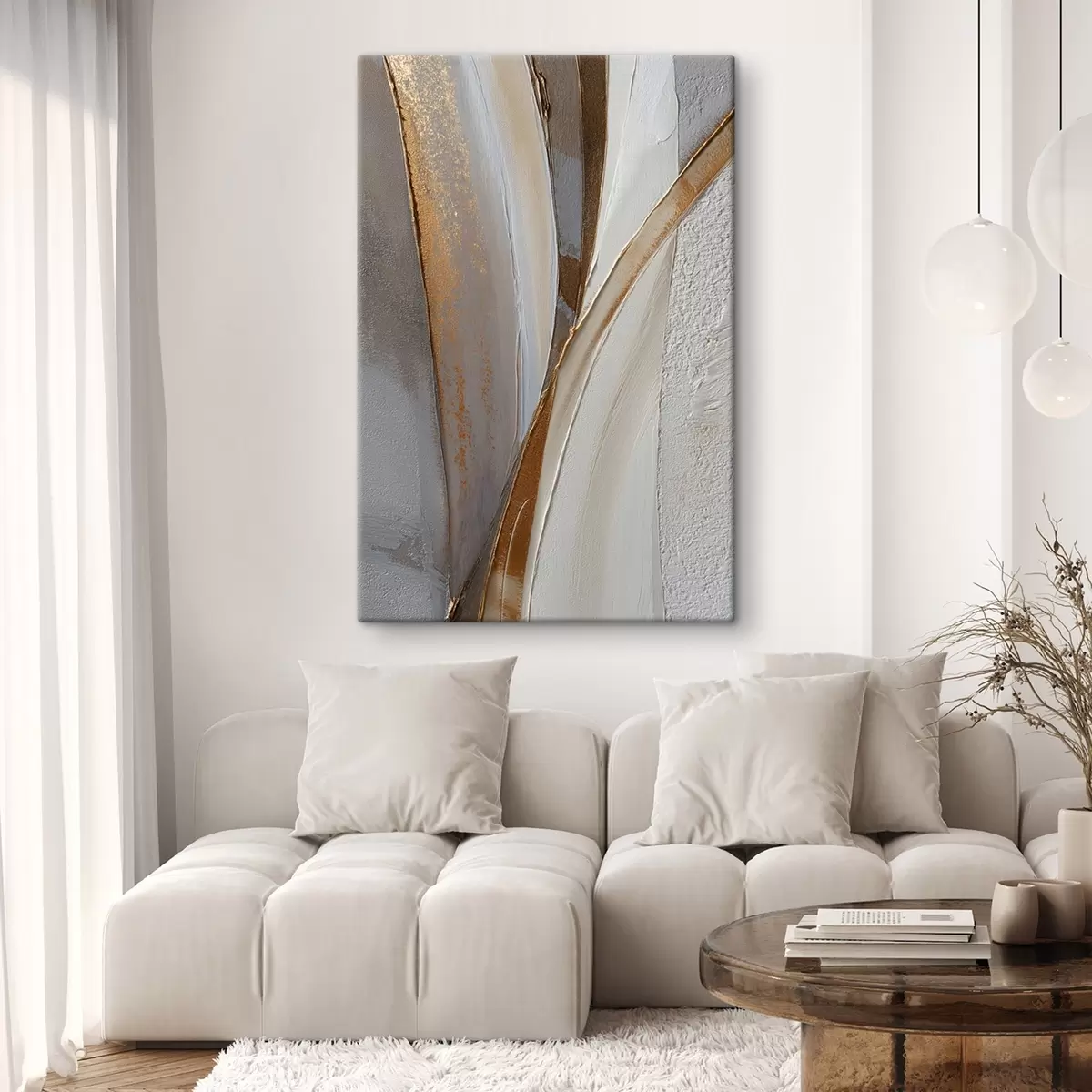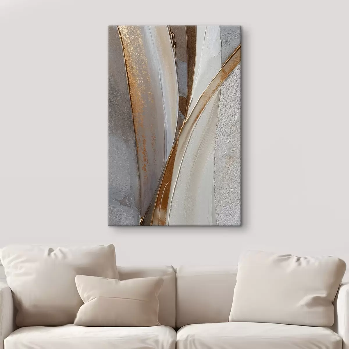 Pictură pe pânză Linii abstracte texturate cu sclipiri galbene și portocalii Nr s45810
