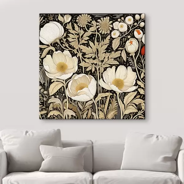 Pictură pe pânză Flori crem și ierburi pe fundal negru Nr s45816