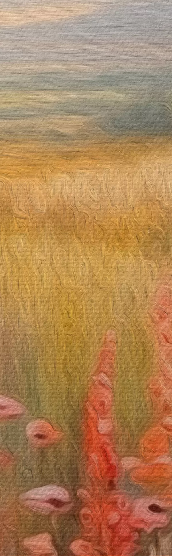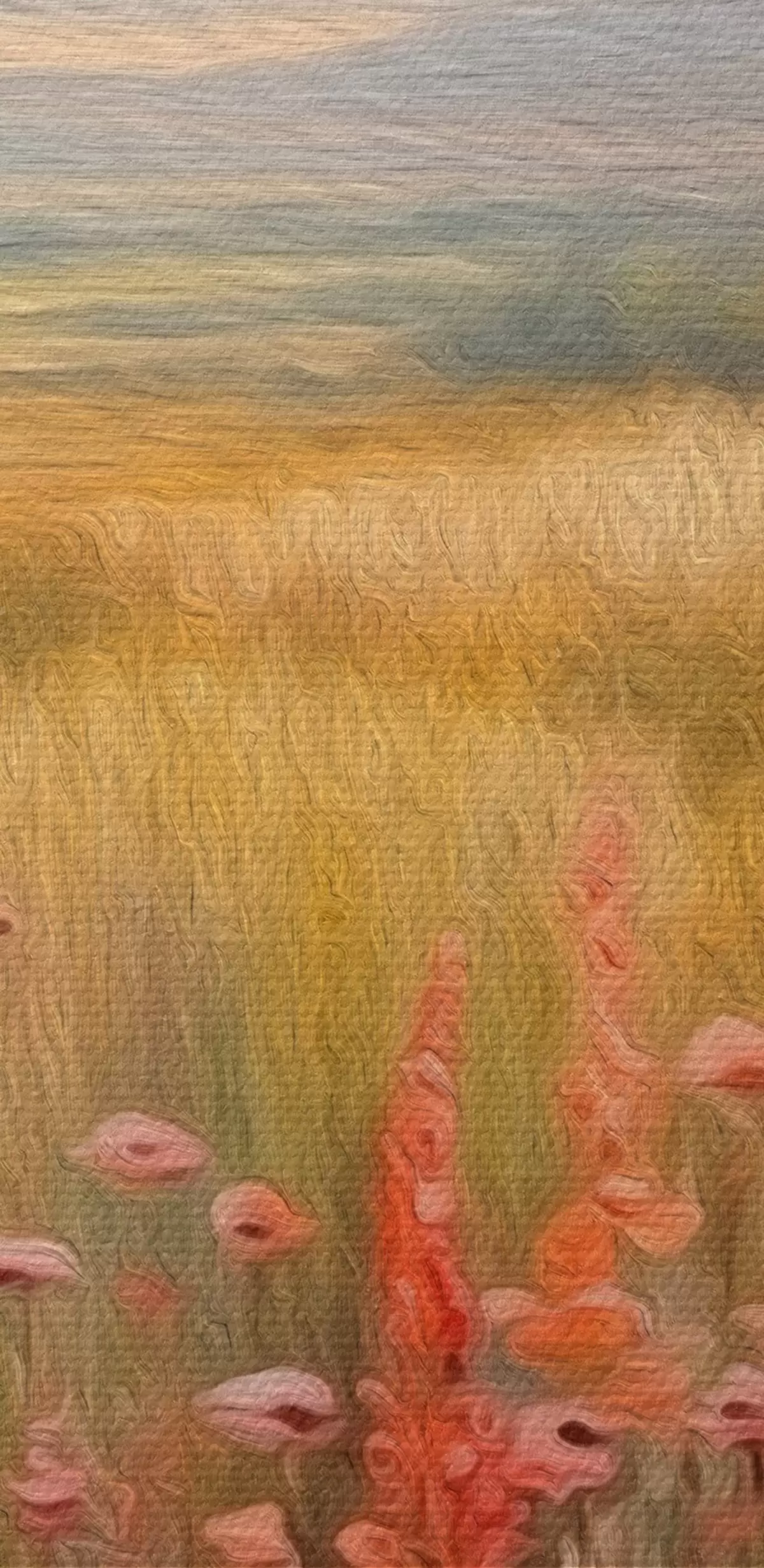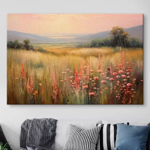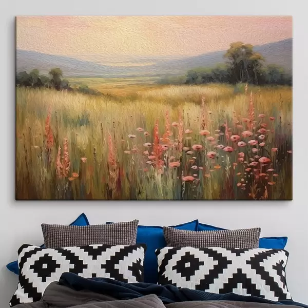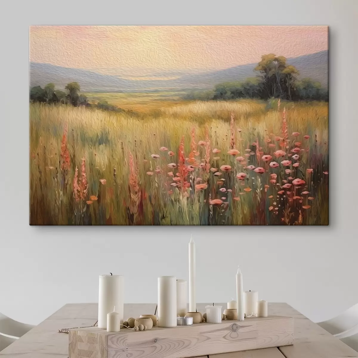 Pictură pe pânză Peisaj rural cu flori la apusul soarelui Nr s45818