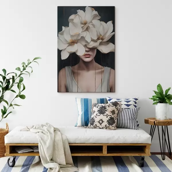 Pictură pe pânză Femeie cu flori albe pe cap Nr s45843
