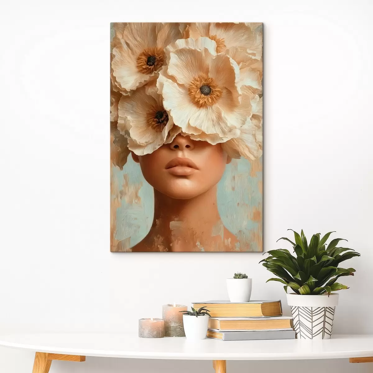 Pictură pe pânză Portret cu flori bej acoperind ochii Nr s45870