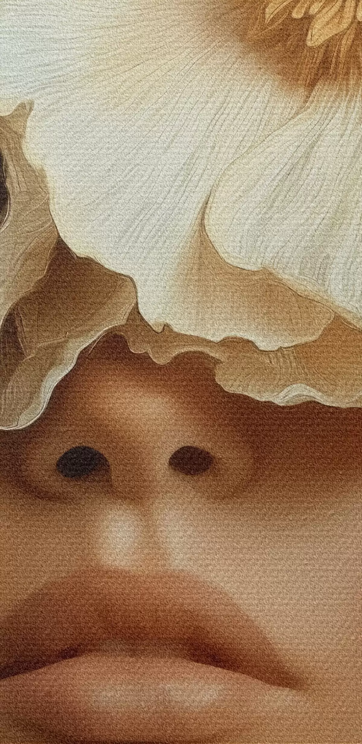 Pictură pe pânză Portret cu flori bej acoperind ochii Nr s45870