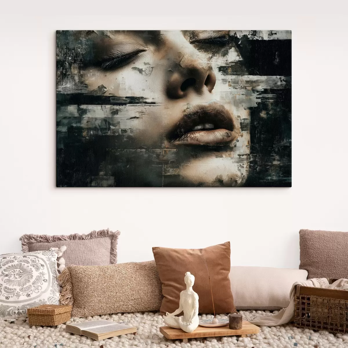 Pictură pe pânză Portret abstract feminin cu efect glitch și texturi Nr s45873