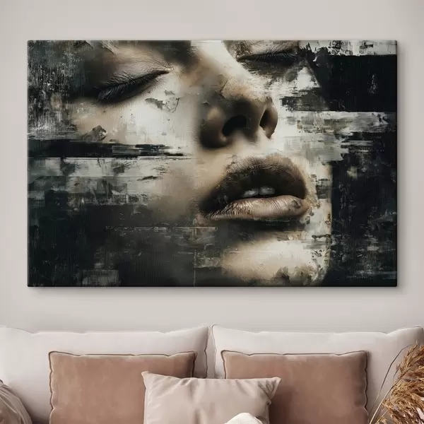 Pictură pe pânză Portret abstract feminin cu efect glitch și texturi Nr s45873