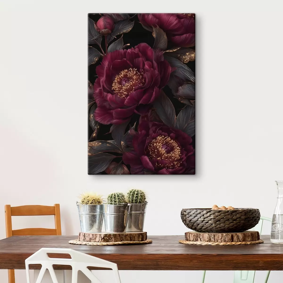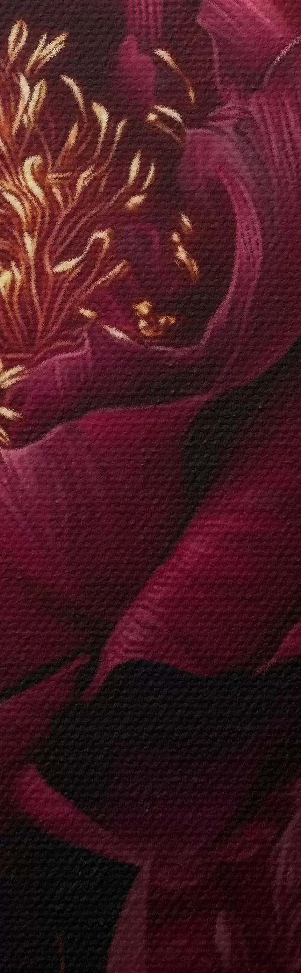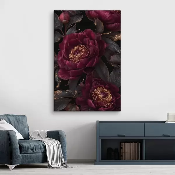 Pictură pe pânză Bujori burgund pe fond negru cu accente galbene Nr s45877
