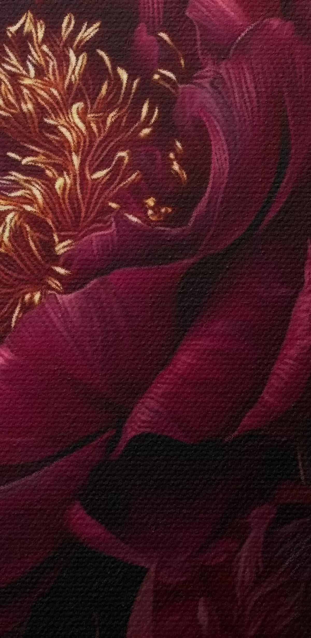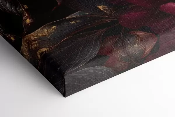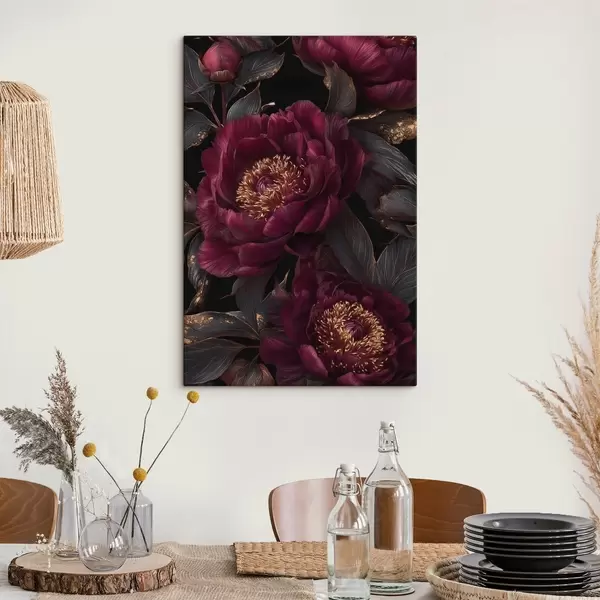 Pictură pe pânză Bujori burgund pe fond negru cu accente galbene Nr s45877